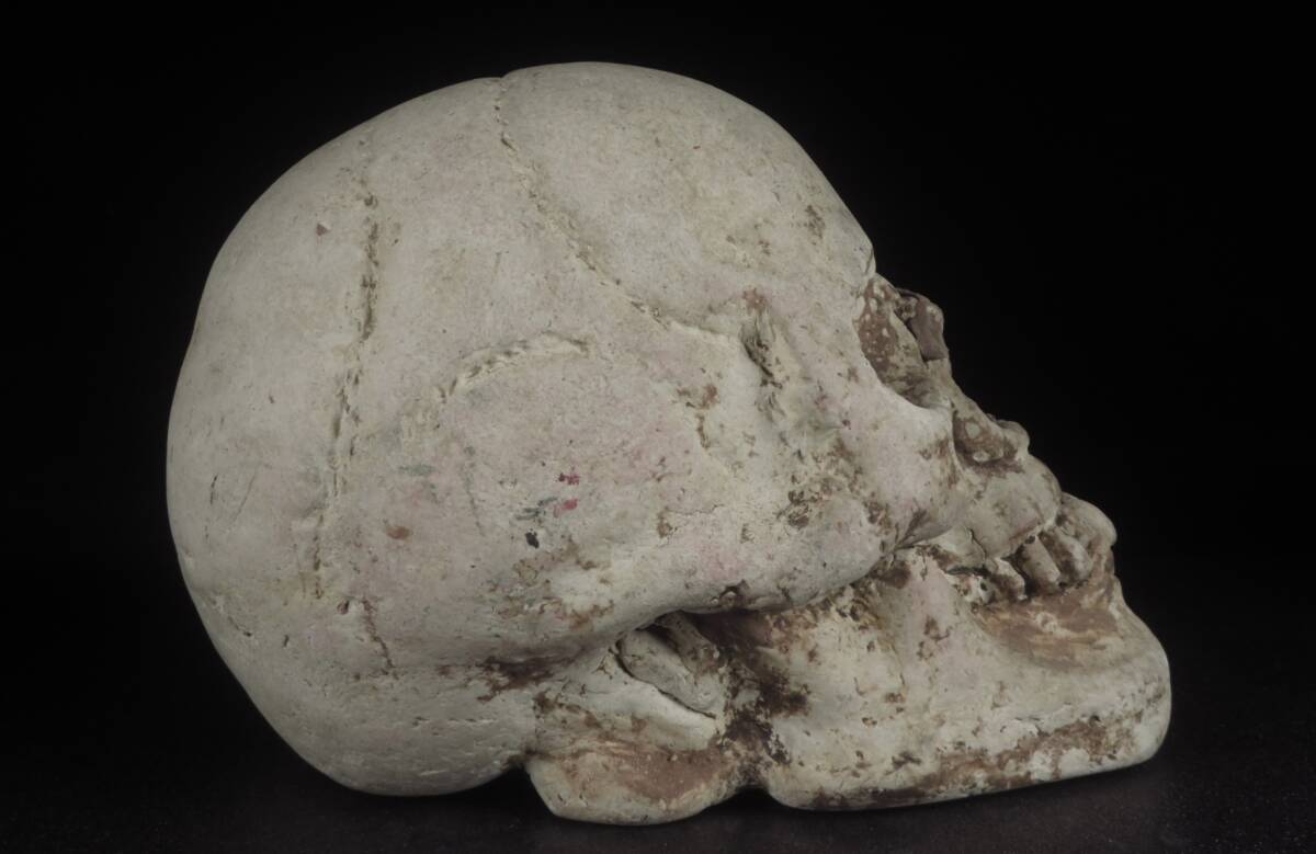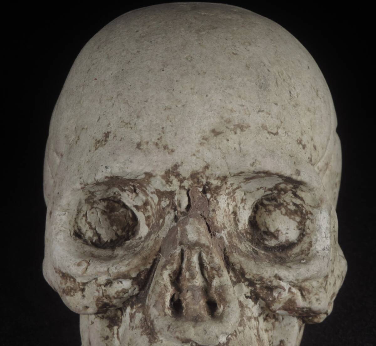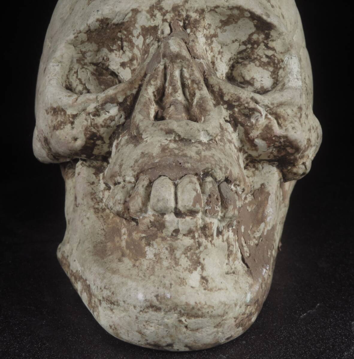 | 【SAKURAYA】珍品 希少品 髑髏 骸骨 ガイコツ オブジェ 頭蓋骨 スカル 置物 骨董品 古美術品 細密彫刻 高さ15.5cm 重量1932g | ||