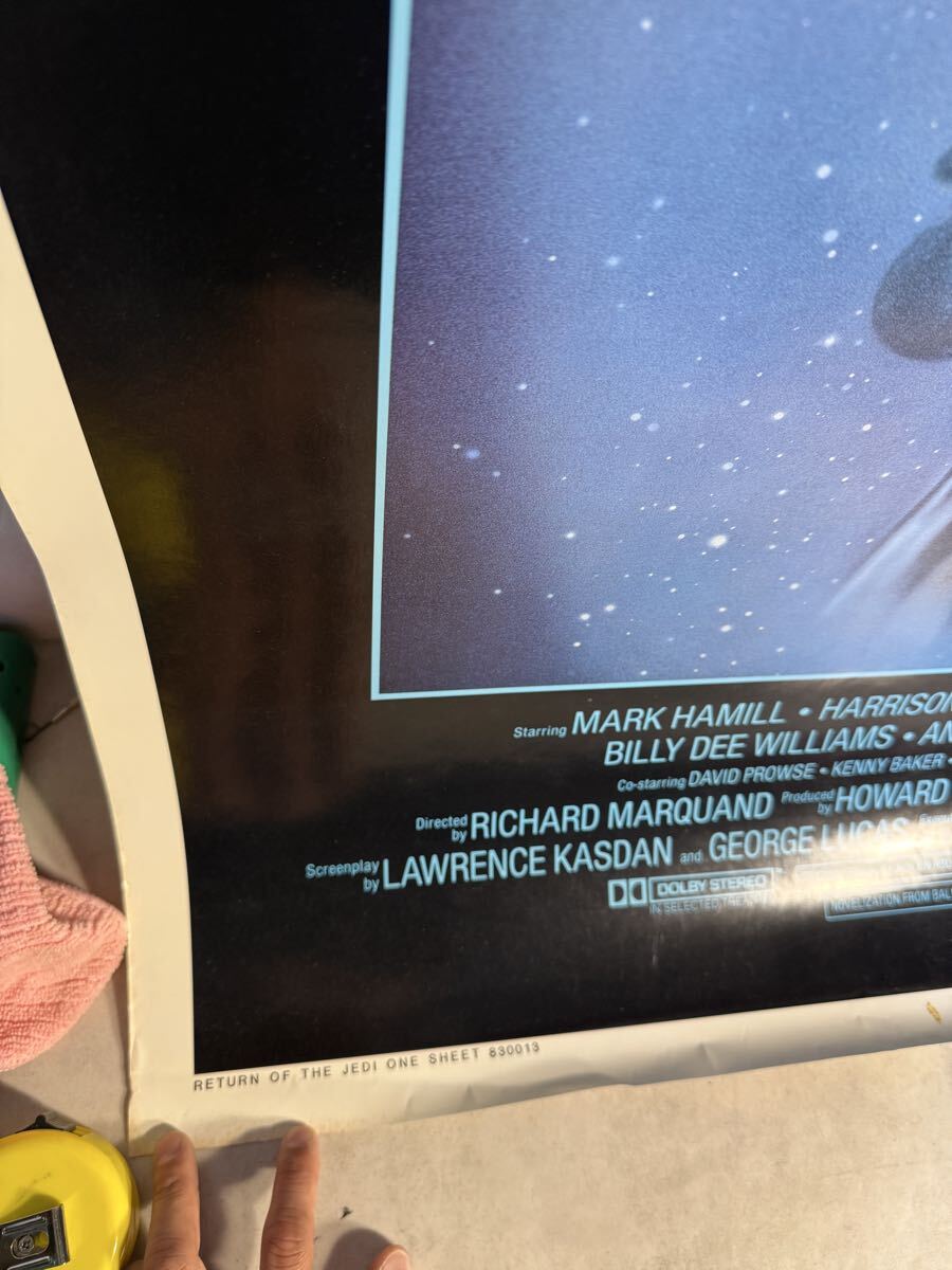 1983年公開、映画『スター・ウォーズ/ジェダイの帰還(Return of the Jedi)』の米国劇場用オリジナルワンシートポスター(27×41インチ)です。下部に「RETURN OF THE JEDI ONE SHEET 830013」「PRINTED IN U.S.A.」の印字があり、20世紀フォックス配給・Lucasfilm Ltd.製作による正規印刷版で間違いありません。紙質・色味ともに当時のデラックスオフセット印刷特有の深みが感じられ、スター・ウォーズ黄金期の雰囲気をそのまま残しています。| 出价者 | 信用 | 价格 | 时间 |