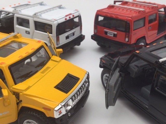 キンスマート社製 ハマーH2 2008のミニカー お届けするのは画像1枚目の商品のみとなります。 2~4枚目は共通の画像となっております。ご注意くださいませ。 こちらの商品は箱入りではございませんので、ご注意くださいませ。 サイズ:全長約12センチ×幅約5センチ×高さ約5センチ スケールは1/40 ボディはダイキャストメタル製、シャーシや内装はプラスチック製。 プルバック機能付きでチョロQみたいに走らせることができます。 両サイドドア開閉可能。(運転席、助手席のみ) 内装はグレー、左ハンドル、 一台一台検品し、丁寧に梱包しておりますが、 入荷時からのかすかな傷、汚れ、塗装ミスがある場合があります。 |