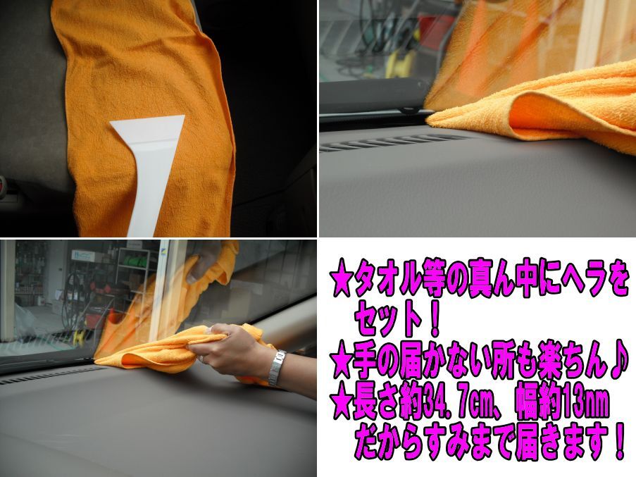 | 窓ふき用ヘラ 数量限定!! プロの車屋・フィルム屋にもご愛用頂いています! とても売れているため、枚数限定販売です!! アルファードなど窓ガラスの拭きにくい場所や届きにくい場所もこれさえあれば窓ふきが楽にできます プロの車屋さん、フィルム屋の方にも、使いやすいとのお声をいただいています。 ホームセンターでもなかなかこの長さのヘラは販売していません・・ 34.7cmの長さは作業効率をUPさせます ヘラは柔らかく弾力のあるシリコン素材を使用しているので、ガラス面にしっかり密着し、水滴をムラなく一気にふき取ります。 傷をつけにくい素材なので、車の窓ガラスを守ります。 使用後は、サッと水洗いするだけなのでお手入れも必要ありません。 もちろん家庭用にもご使用いただけます!掃除が億劫な鏡や窓、洗面台の汚れや水滴を簡単にふき取ることができ、家事の時短を実現♪ ◆商品サイズ◆ ・長さ:34.7cm ・幅:13cm |