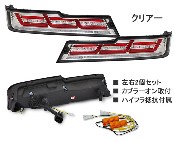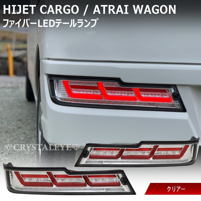 商品番号:J254CL 車種:ハイゼットカーゴ/アトレーワゴン 商品名:LEDテール カラー:クリアータイプ ----------- ※ご注文後のカラー変更はご対応致しかねますので ご入札前に必ずカラーをご確認下さい。 他のカラーの出品ページは 【 こちら 】 ▼ 商品説明 クリスタルアイ 新製品 ハイゼット/アトレー ファイバーLEDテール 立体的な3連レッドファイバーが非点灯時でも 存在感を際立たせ、精悍なイメージに。 夜間も抜群の明るさでアピール度抜群です。 流れるシーケンシャルウインカーを採用し、 ブレーキ・バックランプにも高輝度LEDを使用。 視認性に優れ、安全面にも考慮したテールランプです。 ▼ 商品詳細 ■左右新品セット ■高輝度シーケンシャル ウインカーLED ■ハイフラ防止抵抗付属 ■カプラーオン取り付けOK ■取り付け説明書 保証書付属(LED切れ 180日) ▼ 適合車種 ・ハイゼットカーゴ(S321V/S331V)後期 ・アトレーワゴン(S321G/S331G)後期 ・ハイゼットデッキバン(S321W/S331W)後期 ・ピクシスバン(S321M/S331M)後期 ・ディアスワゴン(S321N/S331N)後期 ・サンバーバン(S321B/S331B)後期 ・サンバーバンオープンデッキ(S321Q/S331Q)後期 ※2017年11月以降のマイナーチェンジ後用 ※2017年(平成29年)11月以前の前期、中期は、ライトの形状が異なる為に 装着できません。 |