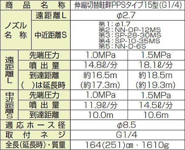 | ■ 伸縮切替畦畔PPSタイプ 鉄砲噴口 商品一覧 ■ | |||||||||