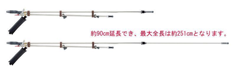 | ・先端キャップと手元ニギリ部分に高強度樹脂を採用することにより、従来品よりさらに軽くなり (従来品伸縮切替畦畔噴口G型に比べマイナス140g)作業負担を軽減します。 ・遠距離ノズルを伸縮式にして飛距離アップを実現しました。 ・パイプは腐食に強いステンレス製です。 ・先端ノズルは、磨耗に強いセラミックを使用し、他のノズルはステンレス製を使用しています。 ・第2~第5ノズル内部には網が内蔵されているため、ノズルの目詰りが少なくなります。 ・各ノズル部にはノズル番号が付いているため、取りはずしても元の位置に取り付けられます。 また白色位置決めラインが付いているため、角度を適正に保つことができます。 | |||