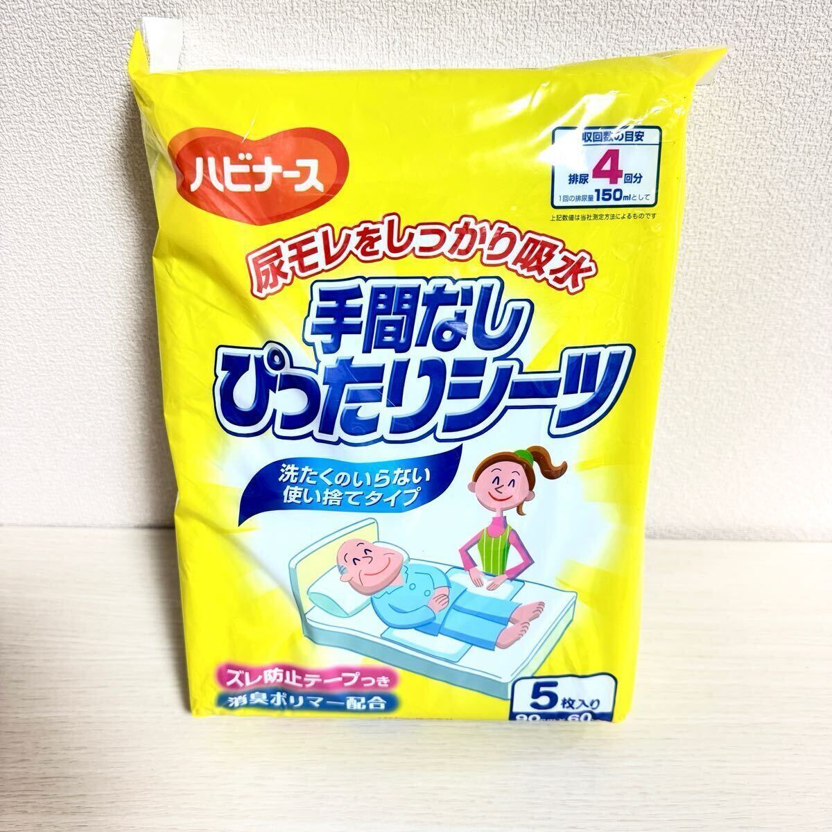 ご覧いただきましてありがとうございます。 商品タイトルのお品の出品になります。 よろしくお願いします。 画像にあるモノのみの出品になります。 ハビナース 手間なしぴったりシーツ(使い捨てタイプ)5枚入りの未開封品です。 尿モレなどをしっかり吸水し、洗濯不要でそのまま処分できる便利な介護用シーツです。 ズレ防止テープ付き・消臭ポリマー配合で快適にご使用いただけます。 【商品詳細】 ブランド:ハビナース 商品名:手間なしぴったりシーツ 内容量:5枚入り サイズ:1枚あたり 約80cm × 60cm 吸収目安:排尿約4回分(約150ml×4) 状態:新品未開封 ※衛生用品につき、返品・交換はお受けできません。 ご理解のうえご入札をお願いいたします。