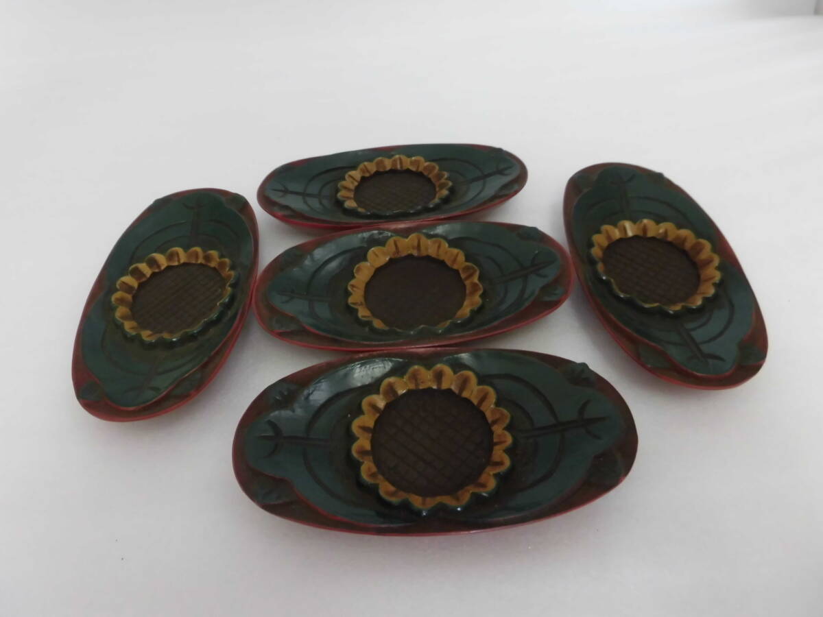 | 草華紋色漆仕上小判茶托 五枚一組 煎茶道具 |