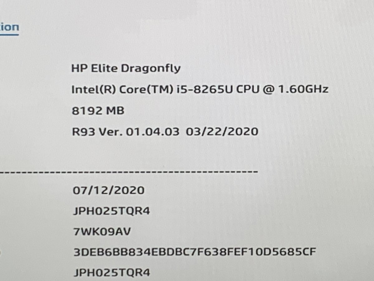 | CPU | Corei5-8265U | コアシール (プロダクトシール) |