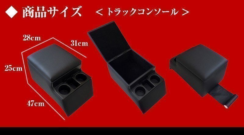 商品名:トラック用コンソールボックス 黒 レザー風 アームレスト 収納 肘掛け BOX ドリンクホルダー Azur 「送料無料」