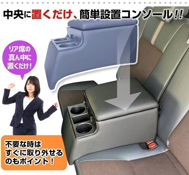 ハリアー トヨタ リアシート用コンソールボックス 黒 レザー風 アームレスト 後部座席 収納 肘掛け ドリンクホルダー 即納
