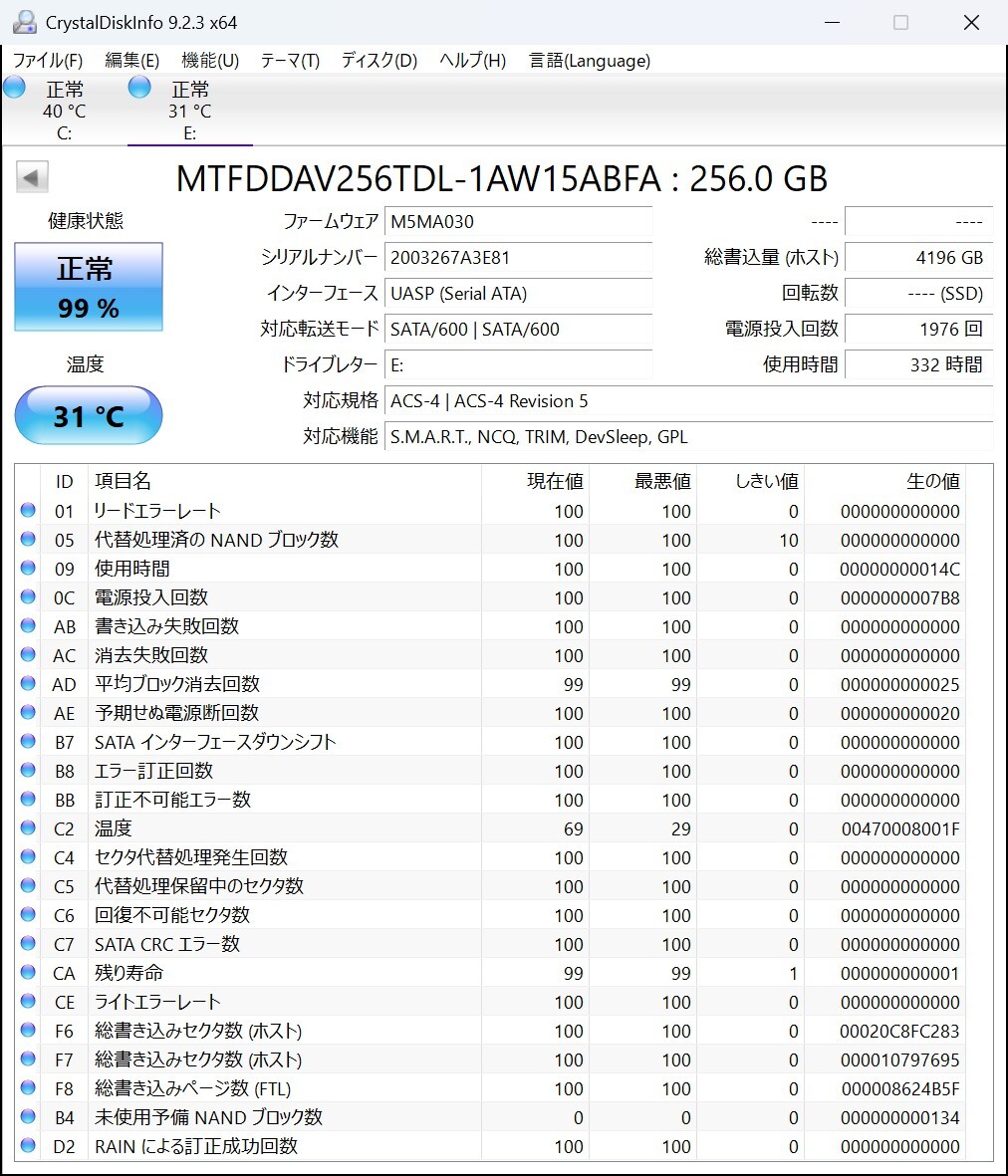 | ★☆1円 ~スタート☆MICRON 1300 SATA SSD M.2 2280 256GB 使用時間:332H☆★ | |