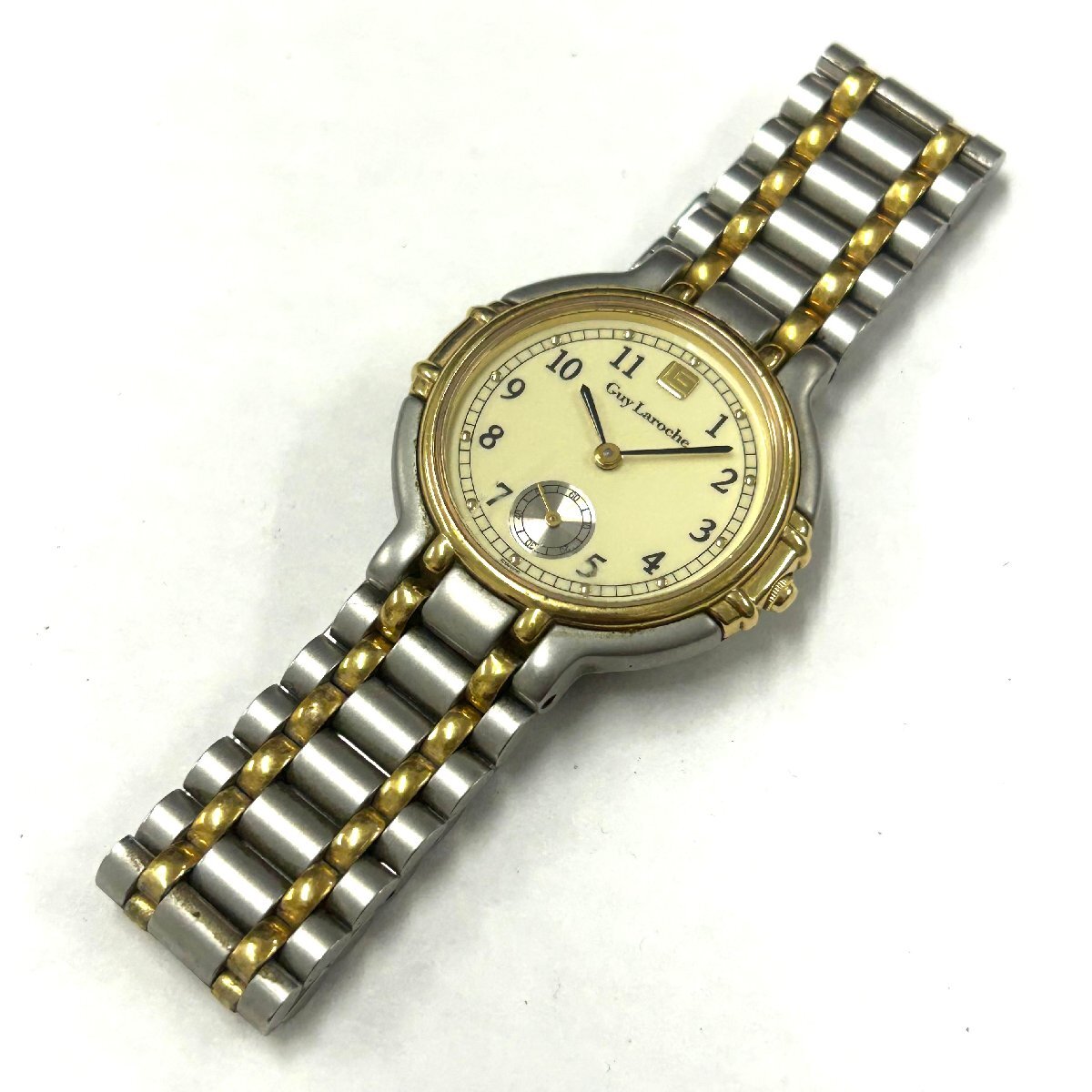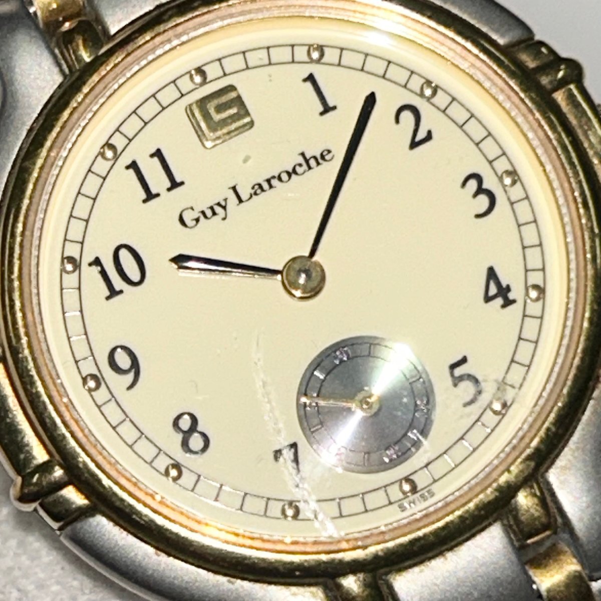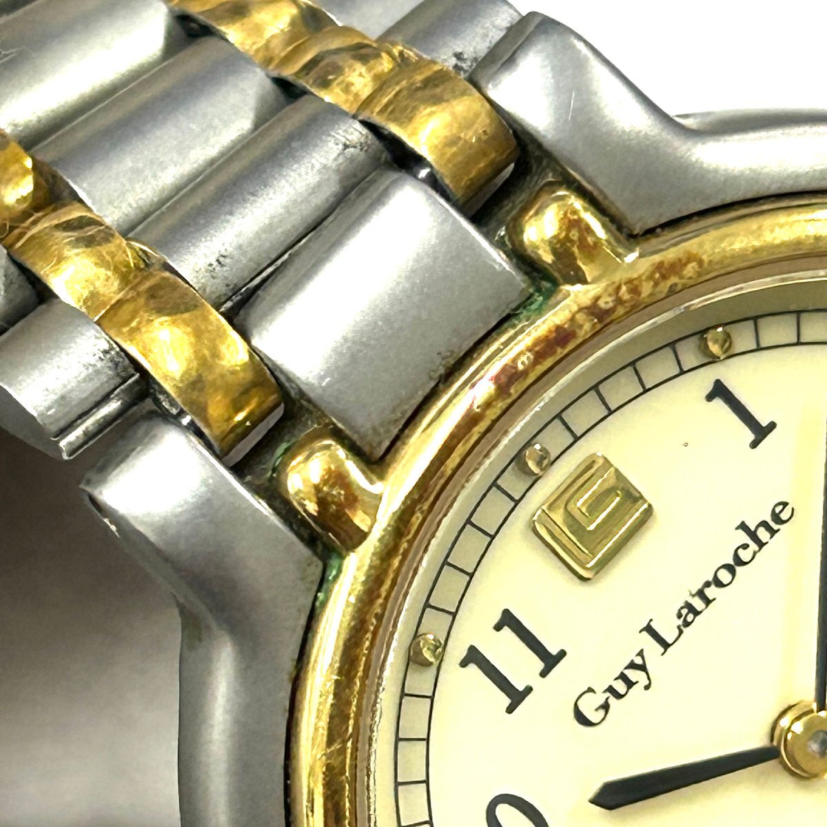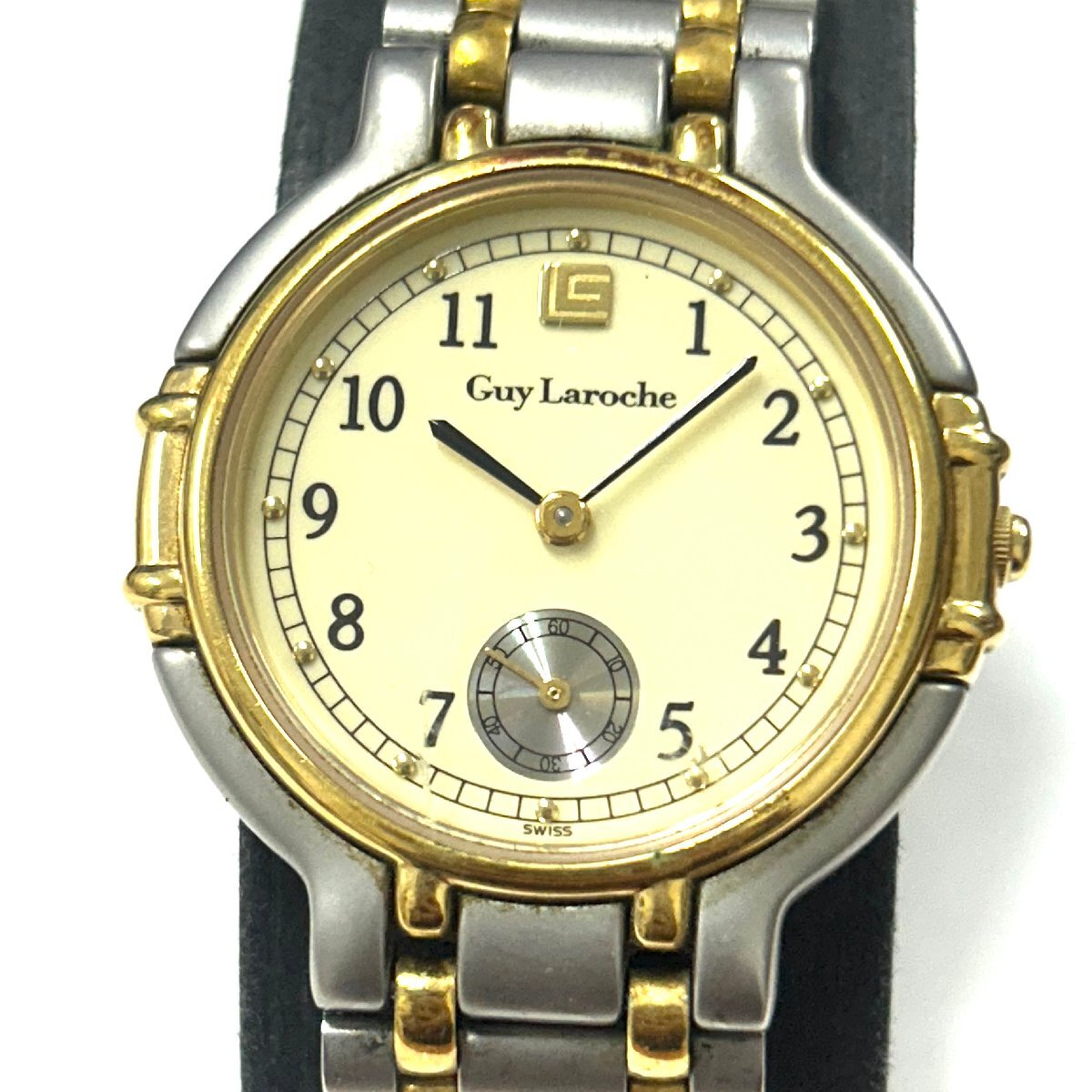 ◆ギラロッシュ Guy Laroche◆スモセコ 122.15 クォーツ 腕時計 メンズ ウォッチ クリーム系文字盤 SS ラウンドフェイス 不動品