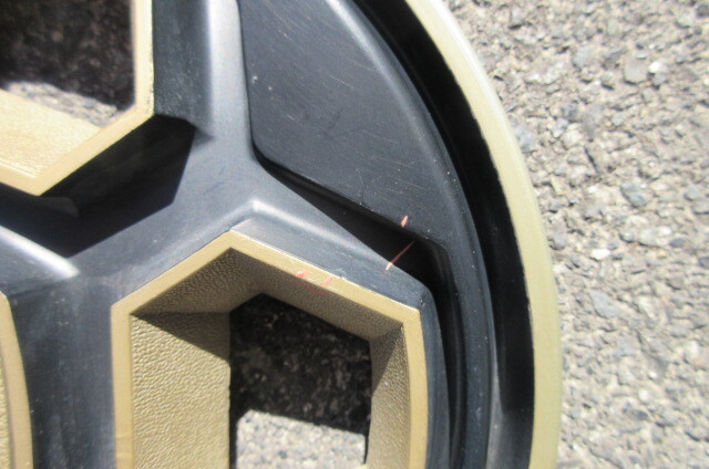 倉庫を整理していたら出てきました。30年以上前からあると思います。添えられた紙に「ヒノ ホンダ GSR 10インチ」と書いてありましたが、意味がよく分かりません...。10インチと思いますが、不明とさせてください。状態ですが当時物にしてはいいと思います。ガリキズもないくらいです。1枚、オレンジ色の塗料が何ヶ所か付着しています...。取れそうですがキズになりそうですので現状のままでのお渡しになります。古い物ですのでノークレームノーリターンでお願いいたします。素人ですので梱包、不十分な感じになるかもしれませんが、よろしくお願いいたします。
