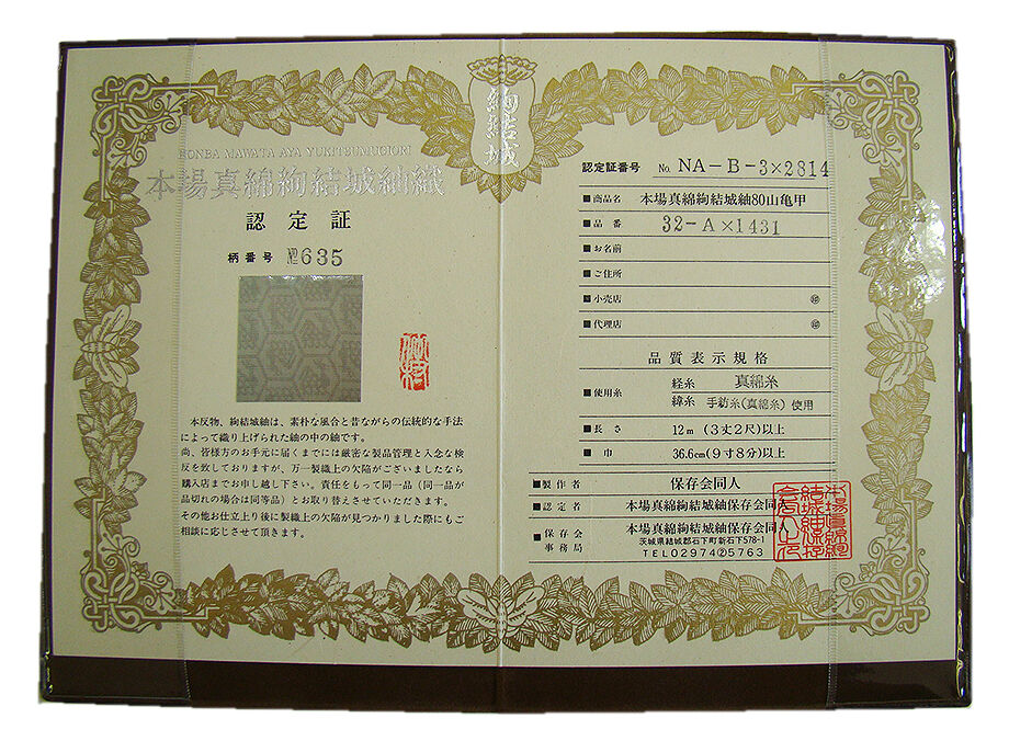 | ちょっと一言 | お洒落心を満たす一度は出逢い纏いたい極め細やかな80山亀甲の本場真綿絢結城紬です。 本場結城紬の1番の特徴は眞綿から手で紡ぎだす糸にあります。 眞綿は蚕の繭を煮て柔らかくして広げたもので柔らかく、空気を含み温もりに満ちております。 この眞綿から人の手で糸を紡ぎだすことで素材の良さを堪能できる最上質の糸となります。 たくさんある紬の中でも縦糸、横糸の両方に手つむぎ糸を使うのは本場結城紬だけです。 これが本場結城紬が最高峰の絹織物とされる由縁です。 驚く程に柔らかでふっくらとした豊かな風合いは、さすがの代物と唸らせる極上の着心地です。 また、三代お召しになって味が出ると言われるお品の素晴らしい地風は、 丁寧に紡いだ上質な真綿を使用しておりますので、大変しなやかで、糸に保温性があり、 温かく、軽くて柔らかいのが結城紬、最大の特徴です。 着物の最後はやはり「結城紬」と昔から言われております。 一度は出逢いたい紬の王様の美に染まり風格を感じさせます。 帯や小物次第で幅広いコーディネートをお愉しみ頂けるかと思います。 |