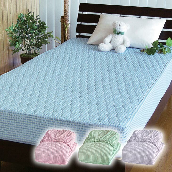 | 即決可@新品先染め綿サッカー織敷パッド一体型ボックスシーツ シングル/ブルー | ||||||||||||
