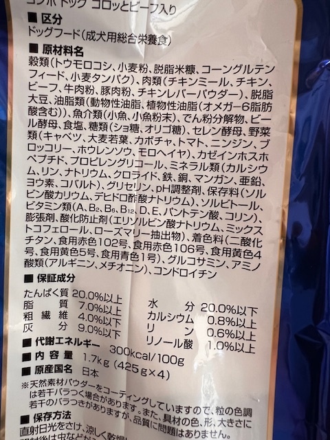 | * 商品説明 * ◆市価1袋1760円の商品×4袋セット! しっとりホロホロ食感がおいしい粒と、角切りビーフや国産小魚のトッピングがうれしい総合栄養食。 おなかの健康のためのオリゴ糖、骨と関節のためのグルコサミン、コンドロイチンを配合し 成犬の健康維持をサポートします。 国産 1.7kg(小分け4パック)入り×4袋セット 賞味期限2025.11月末 ※商品重量約7600g 未開封品です。 処分品とご理解の上ノークレームノーリターンでお願いします。 | ||||||||