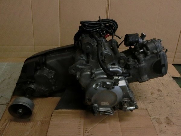 | ■商品説明■ エンジン実動/水冷,4st,インジェクション/単気筒/圧縮:1.5mpa/エンジンNo:MF10E-1204092メーター表示距離54677km 始動・吹き上がり・アイドリング確認しました 白煙や異音も無いと思います 駆動系は開けておらず未確認です 変速機構に異常があり、変速しません。 40km以上の加速しないと思います。メーターのFコードが常時点滅します。 全体にキズ・サビ少なく、オイルの滲みもありません。 オイルやクーラントも良好でした。 圧縮も十分な値だと判断しますが、走行テストはしておりません。圧縮比は計測状態が異なりますので1前後はズレると思います。 リアアクスルシャフトにはパーキングブレーキドラムが付いています。 使用範囲内の基準・用途・状態等の判断はお客様により異なる為、走行可能な状態と判断している訳ではありません 始動確認はあくまでもその場で初爆、圧縮があり始動できたと言う認識ですので、技量が伴わない方は購入をお控えください。 走行確認もしておりません、その為走行に必要な個所や状態を確認しておりませんので内部の状態まで保証しておらず、内部状態はわかりません 説明文からご理解頂ける作業内容のみの確認です。 短いですが、始動時の参考動画は弊社のWEBサイトからご覧頂けますのでご確認ください ----------------------------- アイラブモーター フォルツァZ/ ABS/ FORZA NSS250 【20230603011】 |