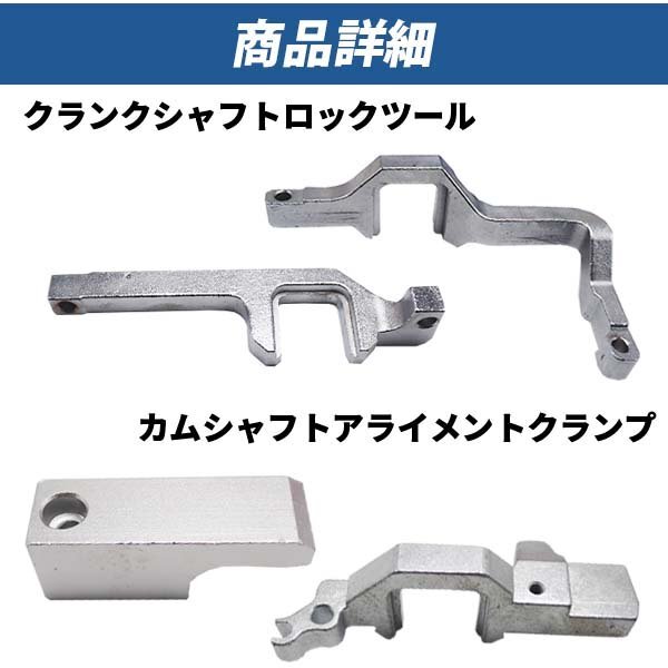 | 商品説明 | 専用収納ケース付き エンジンカムシャフトアライメントタイミングツールセット 10点セットです。 ■タイミングを設定する、シリンダーヘッドガスケットの交換、 タイミングチェーンの交換、カムシャフトの取り付けと取り外しに使用されます。 ■シリンダーヘッドガスケットの交換時およびエンジンタイミングの作業時に必要です。 ■専用ケース付きなので、持ち運びが楽になり、適切な状態で保管することができます。 【参考適応車種】 ミニクーパークーペR56(2006-2010) ミニクーパーHB R55(2007-2010) ミニワンクーペR56(2006-2010) シトロエンC4ピカソ(2008-2009) シトロエンC4(2008-2009) プジョー207CC(2007-2010) プジョー308(2001-2010) プジョー3008(2009-2012) プジョー5008(2009-2012) プジョー207(2006-2010) 【参考適応エンジン型式】 N12 N14 EP3 (8FS) EP3C (8FR) EP6 (5FW) EP6C (5FS) EP6DT (5FT) EP6DT (5FX) EP6CDT (5FV) EP6DTS (5FY) ※入荷のタイミング・ロットにより予告なくケースの色や仕様が変更する場合がございます。予めご了承くださいませ。