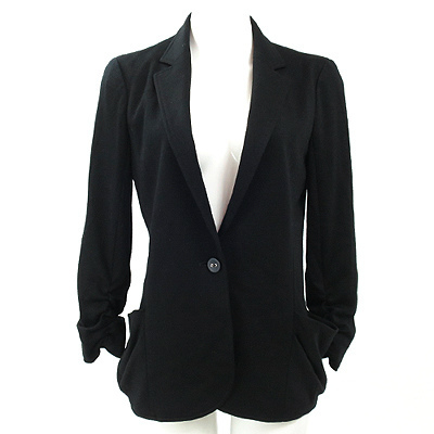| 一枚あると便利な黒ジャケットを入荷いたしました♪ シンプルデザインでオンオフ問わず使える便利なアイテムです。 お袖にシャーリングを施した遊び心あるデザインが◎! ウールの柔らかく、あたたかな素材は秋冬コーデにおすすめです♪ パンツ、スカートどちらにも合わせやすい着丈なので、色々なコーデをお楽しみ下さい☆ 薄い毛羽立ちがございます。 着丈約65㎝ 袖丈約52㎝ 肩幅約38㎝ バスト約84㎝ 【サイズ】:(36) 【素 材】:(毛100% 裏地ポリエステル100%) 【 色 】:(黒) 【程 度】:(AB) 12140606-013 340 003 | ||||