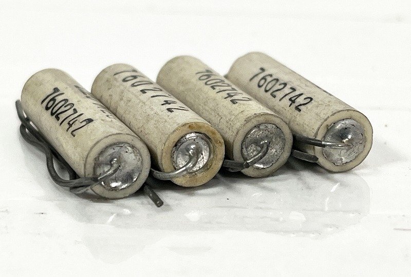 Western Electric D176176B 1.2MΩ 4個です。 ガラススケルトンに金属抵抗を蒸着させた高度な技術。 WE社を代表する技術です。 誤差2%、容量1/2W。 キズや汚れがございます。 ・サイズ:7.2φ×D26.6(mm) |