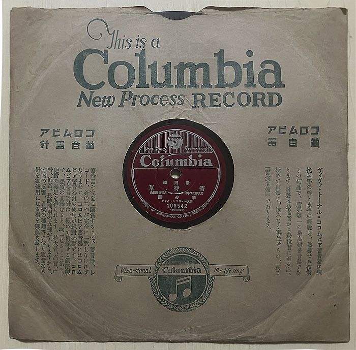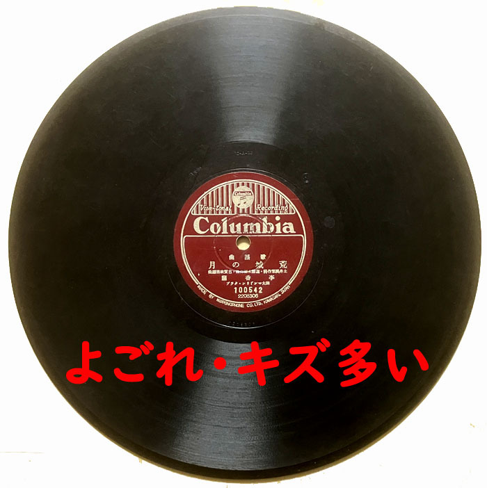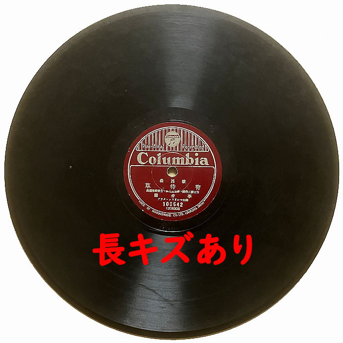 | 戦前コロムビアSP盤 李香蘭(山口淑子)『宵待草/荒城の月』(コロムビア100542) 1942年 レコード1枚 再生確認はしていません。 盤面に「よごれ・キズ・縁イタミ」が多くあります。 正常な再生の保証はできませんので「ジャンク品扱い」での出品です。 ◆ 戦前映画チラシ『白蘭の歌/待って居た男』(1939) チラシ1枚 たて13cm×よこ18cm 「よごれ・シミ・キズ・小やぶれ」あり SP盤「ジャンク品」(音飛び・ノイズ)でも構わないという方のみ、入札をお願い致します。 画像以外に付属するものはありません。 | |||