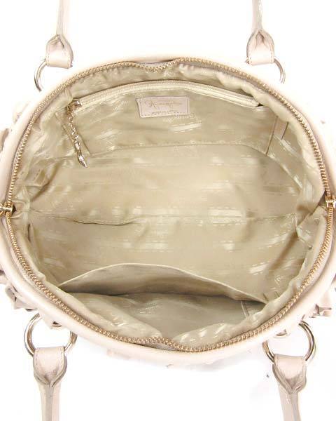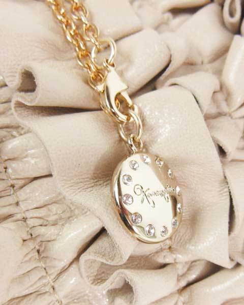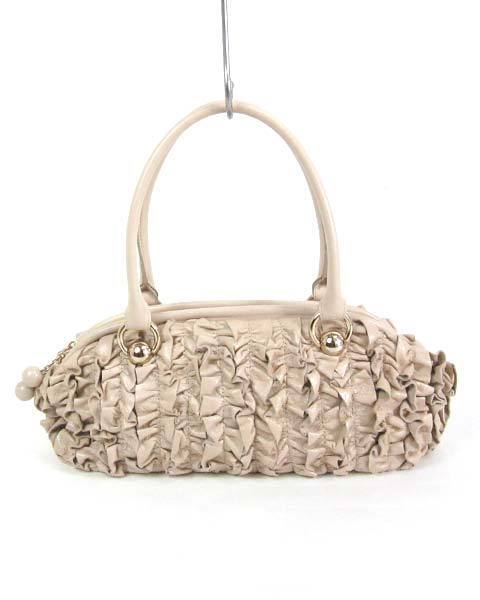 | たっぷりフリルが大人かわいい♪チャーム付きバッグ☆光沢のある落ち着いたベージュで、甘めデザインも品よく♪しっかりめのマチと大きく開くドーム型のファスナー開閉で、小ぶりながら収納力があり、中身も見やすく実用的です。丸いキャンディーのようなファスナー引き手がキュートですね。内側オープンポケット×1、ファスナーポケット×1仕様です。 |