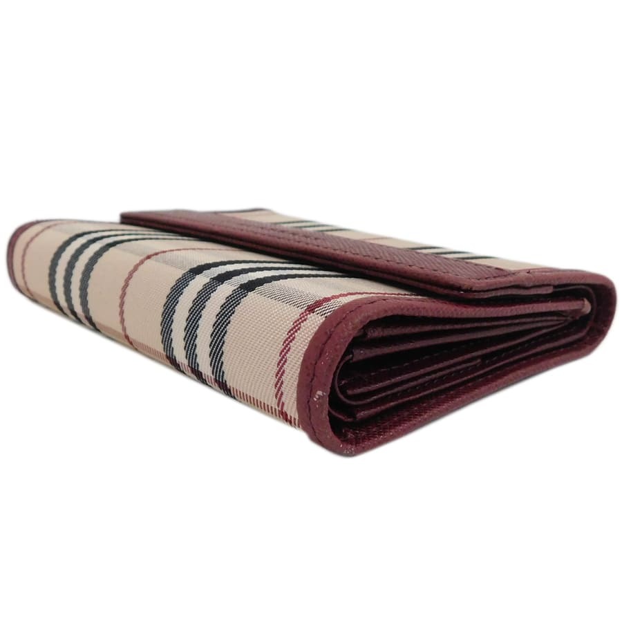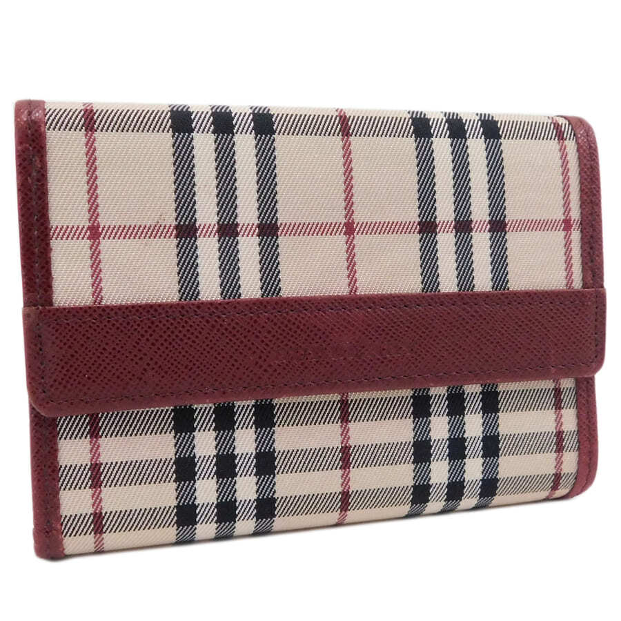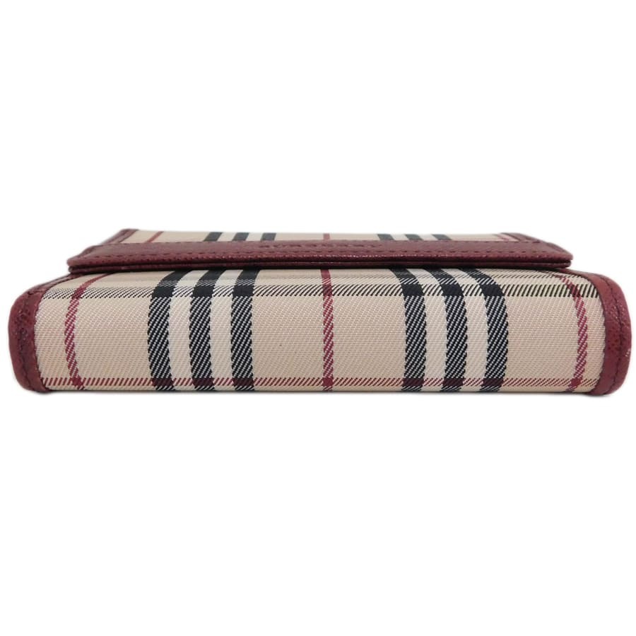 1円■美品/バーバリー/コンパクト財布/レッド系/キャンバス×レザー/バーバリーチェック/BURBERRY ■E.Bgp.Tyb-20[中古]
