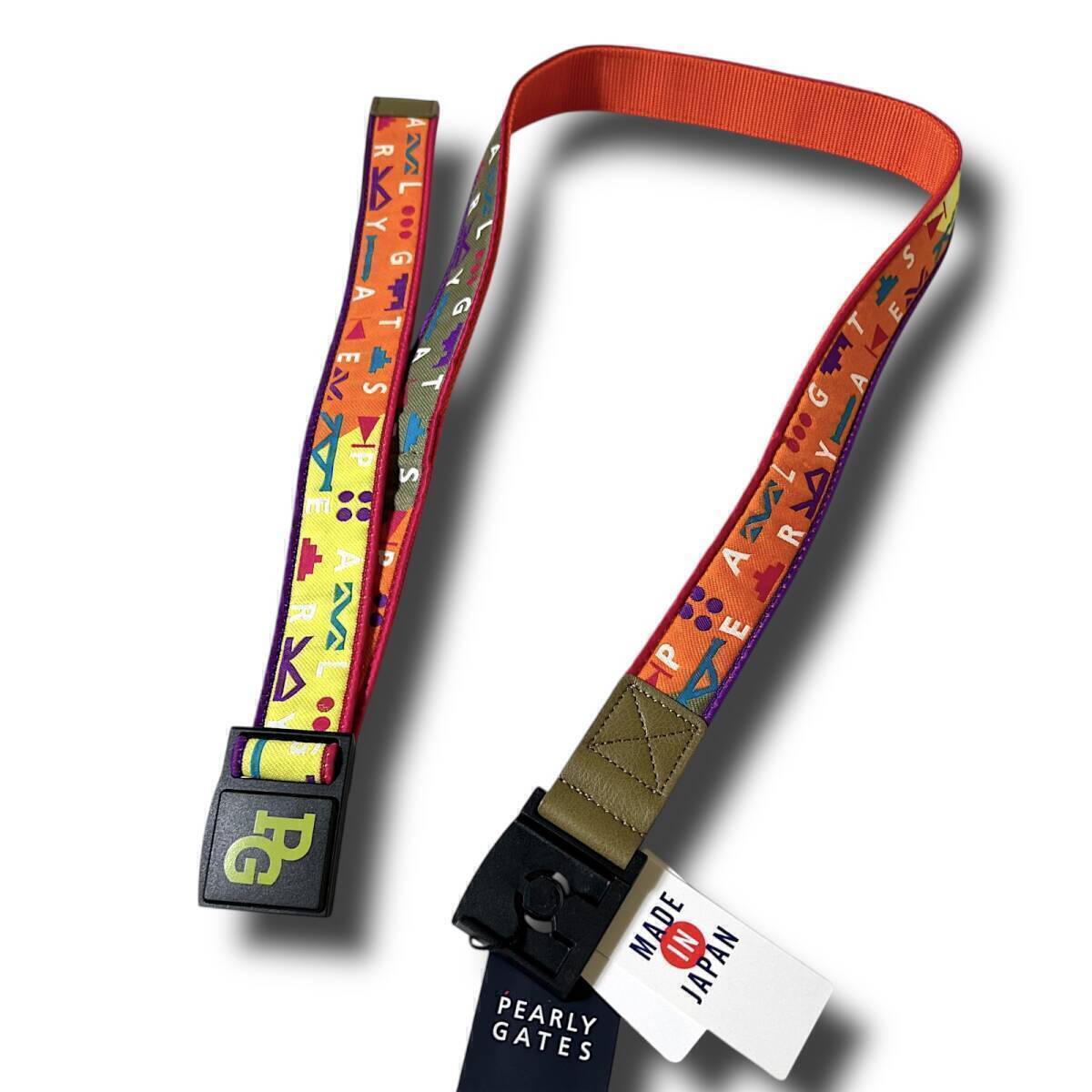 タイトル 新品 PEARLY GATES パーリーゲイツ 定価1.7万 日本製 ナバホ柄 ワンタッチバックル テープベルト ゴルフ ユニセックス ゴルフグッズ GOLF メンズ スポーツ レジャー 普段使い タウンユース カジュアル 151 オレンジ系マルチカラー