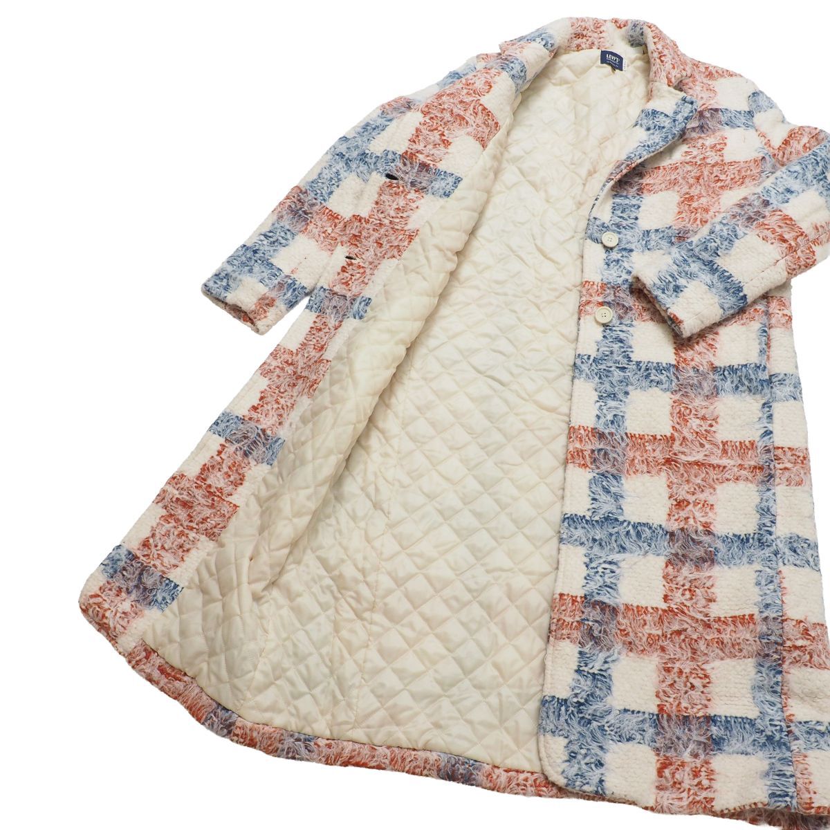 | TI6286☆リーバイス Levi's Made & Crafted チェック柄 ロングコート BRUSH PLAID OVERCOAT 裏キルティング 厚手 アイボリー×赤×青 M | |||