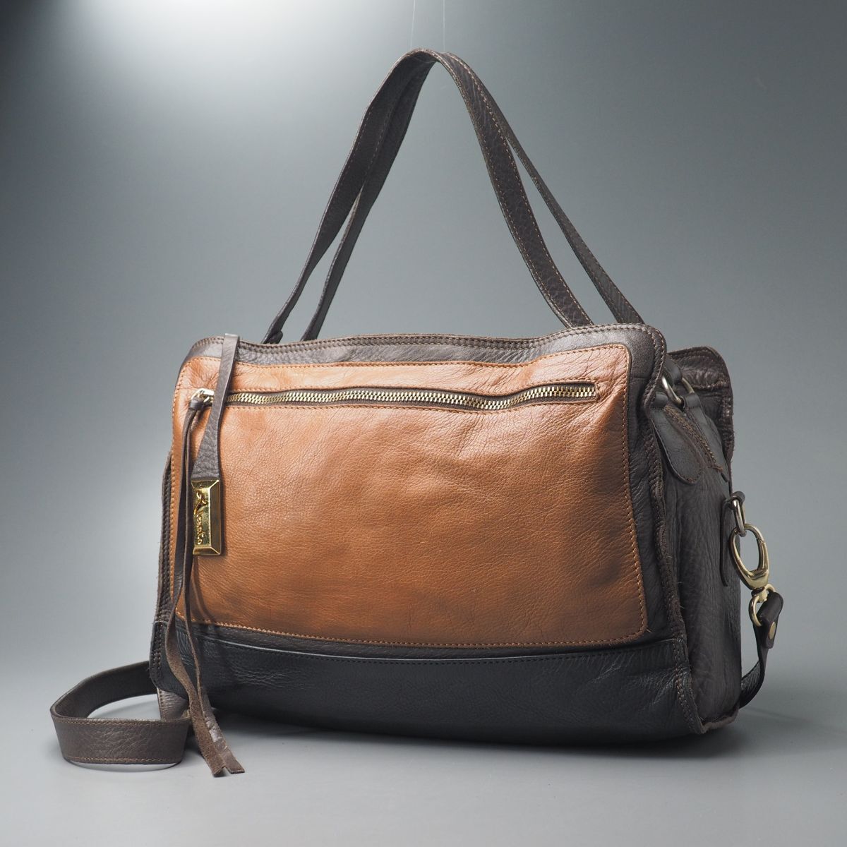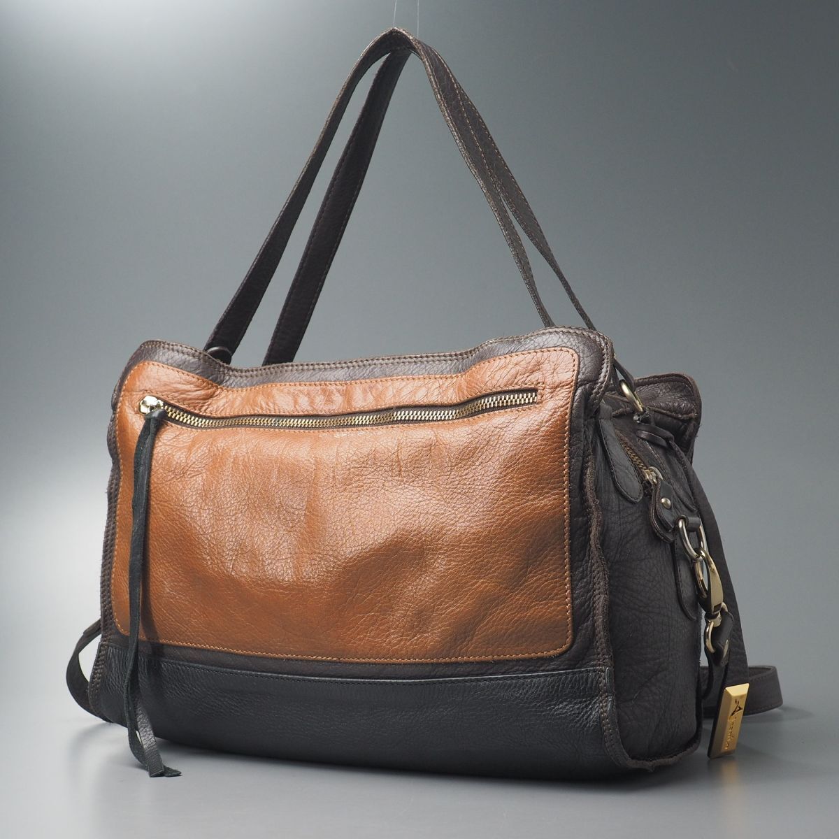 | TE1203◎イタリア製 Aleanto アレアント 2WAY ショルダーストラップ付 トートバッグ ハンドバッグ 鞄 ブラウン系×ブラック系 | |||