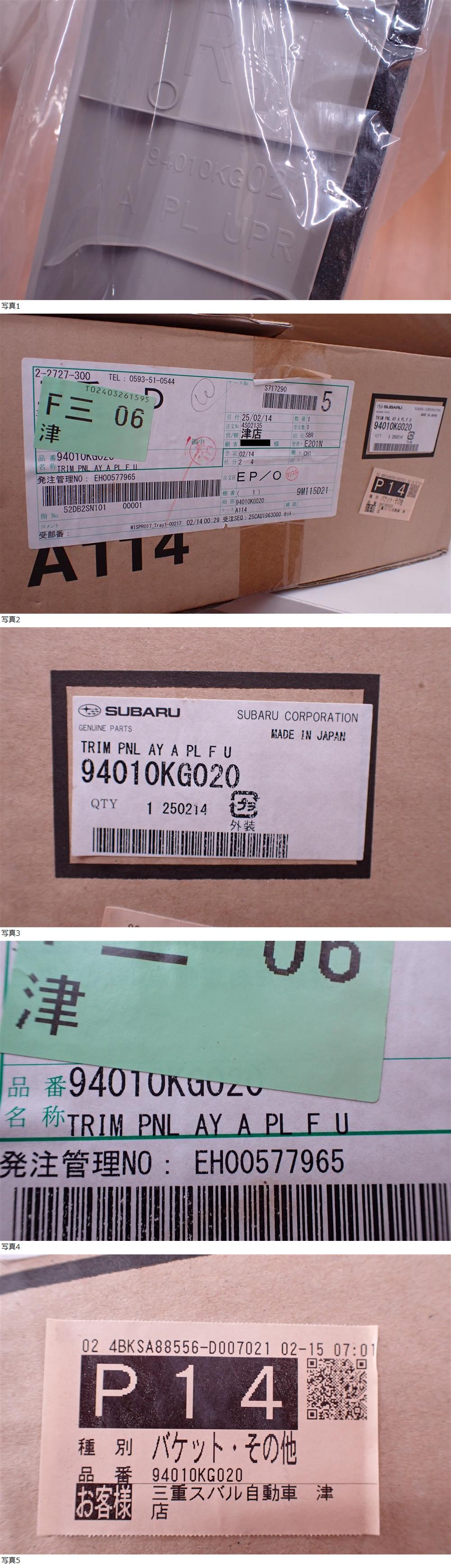 純正品 SUBARU TRIM PNL AY A PL F U 94010KG020 QTY 1 220214 箱ダメージ有 |