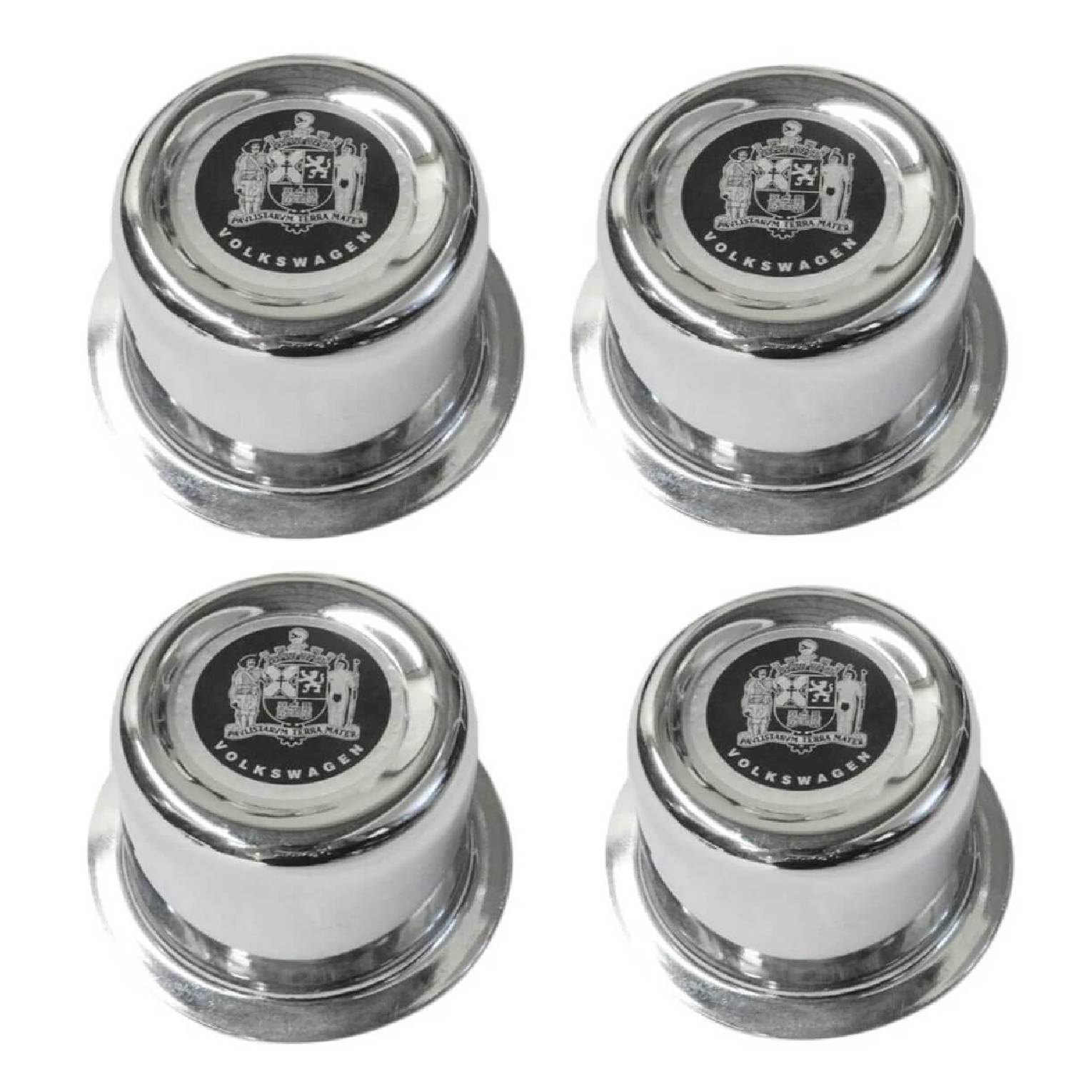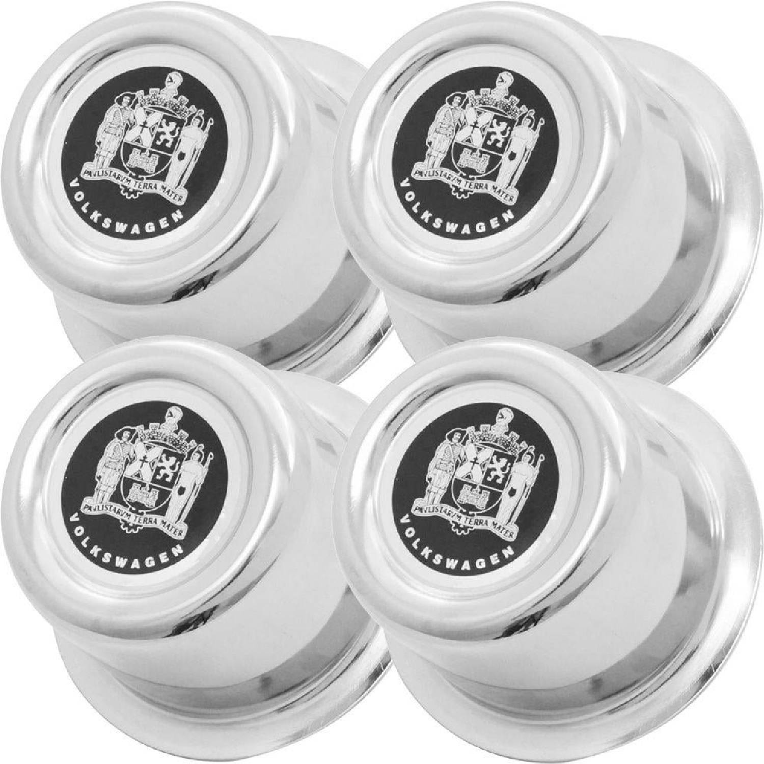 ホイールセンター 真ん中 ハブキャップ 丸型カップ ステンレススチール メッキ Paulistarum 4個セット フォルクスワーゲン VW ビートル T1 ビートル T2 バス T3 カルマンギア T4 ヴァリアント ブラジリア用