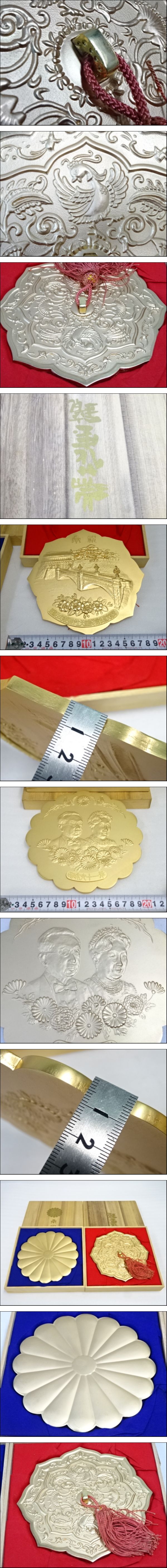 | 商品説明 | ◆84-57/昭和天皇 昭和六十一年? 御成婚記念? 御即位50周年記念 瑞花宝鏡記念メダル 二重橋 菊花紋 桐箱付き コレクター 2点まとめて ◆美品です。 ◆元箱に汚れ有り ◆佐川急便60サイズ ◆梱包サイズになりますが、集荷ドライバーにより異なる場合が御座います。 ◇簡単決済での御入金の落札者様は、必ず簡単決済で入金しましたと御連絡を宜しくお願い致します。 ◇落札者及び、取り置き希望の落札者は様お届け先情報の記載を必ずお願い致します。 ◆取り置き希望の落札者様も、かんたん決済の期限内の決済をお願い致します。 ◆かんたん決済の期限が過ぎた場合は、振込口座のお知らせを致します。
