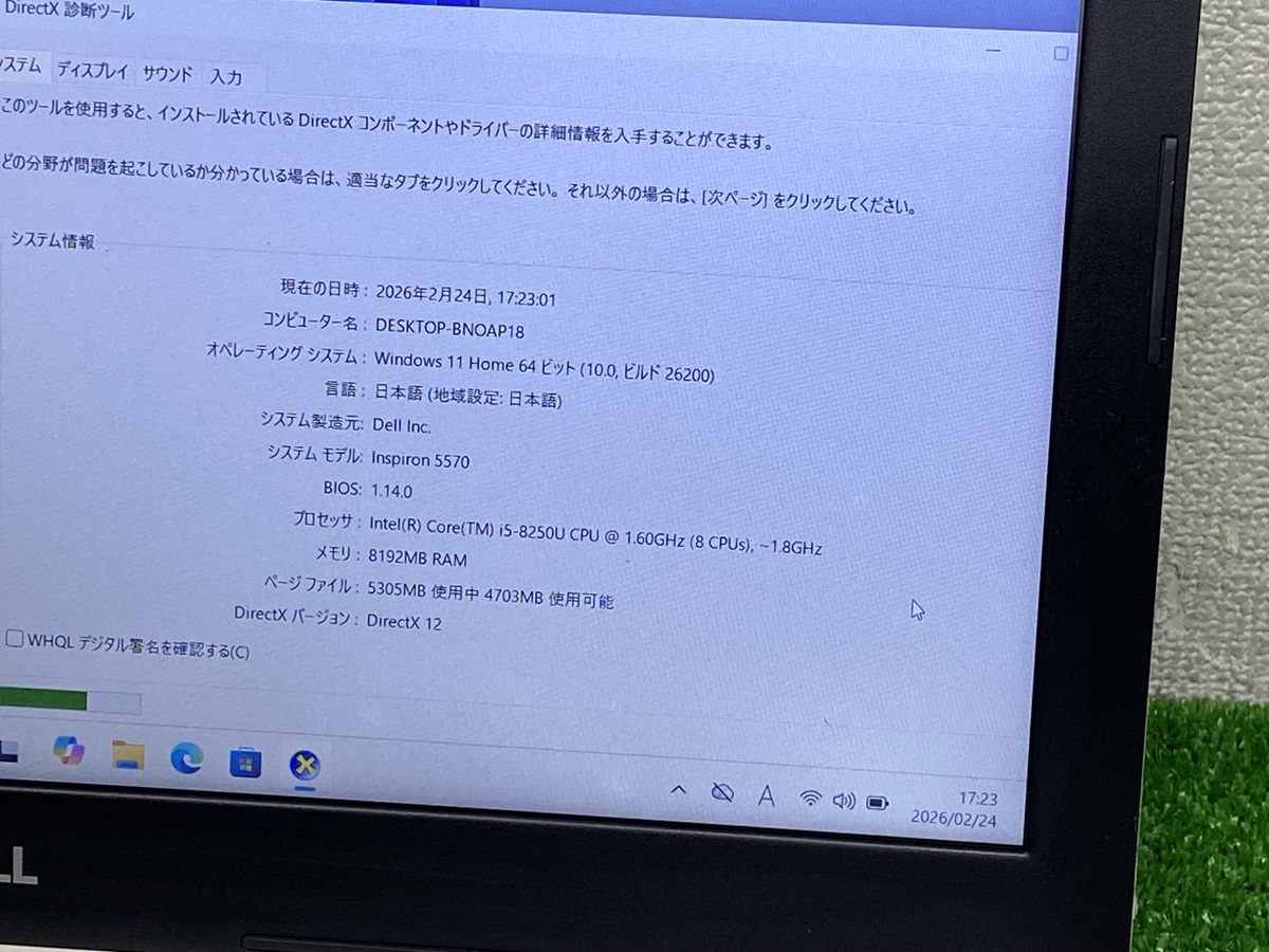 dell inspiron 5570 i5 8th gen laptop i5第8世代 ノートPC i5-8250 メモリ8GB SSD256GB デール ノートパソコン中古 デールノート 15.6