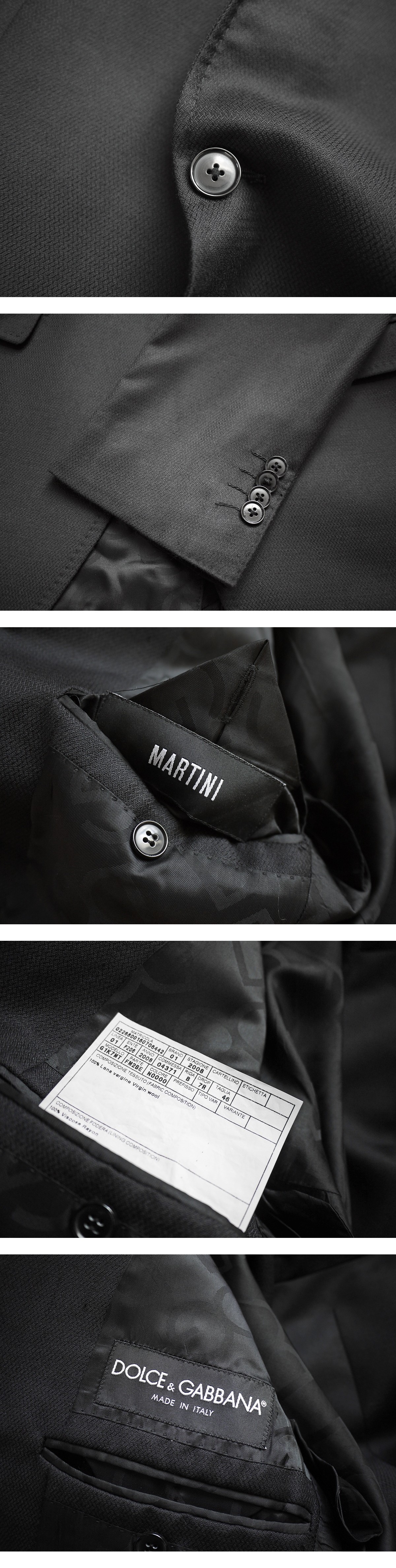 ドルチェ&ガッバーナのMARTINIlineウールギャバジンセットアップスーツでございます。ドルチェ&ガッバーナのブラックタグの最上級コレクションライン、価格も大変高く生地製法ともに最高峰の仕様です。上下別で販売されており、ジャケット単体でもお使いいただける洗練されたカッティングとシルエットで、一般のスーツとは一線を画すデザインセットアップとお考えいただければと思います。