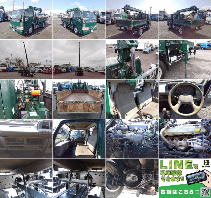 クレーン付平ボディ 上物:タダノ製 上物同年式 4段ブーム ラジコン付(無線) 2.3t吊 リアジャッキ付 フックイン ショートボディ 積載2.3t 荷台寸法:256×162×38 荷台床:鉄板張り 走行8.1万km 準中型(7.5t未満)免許対応車 各都市乗り入れ可 タイヤサイズ:7.00R16 |
