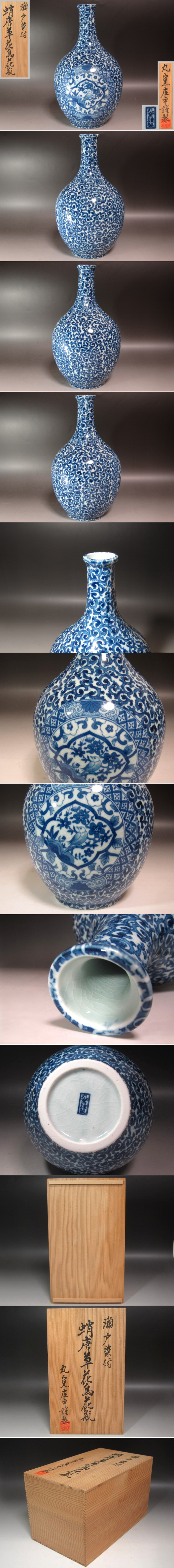 ☆ 丸窯 加藤庄平 瀬戸染付蛸唐草花鳥花瓶☆y709