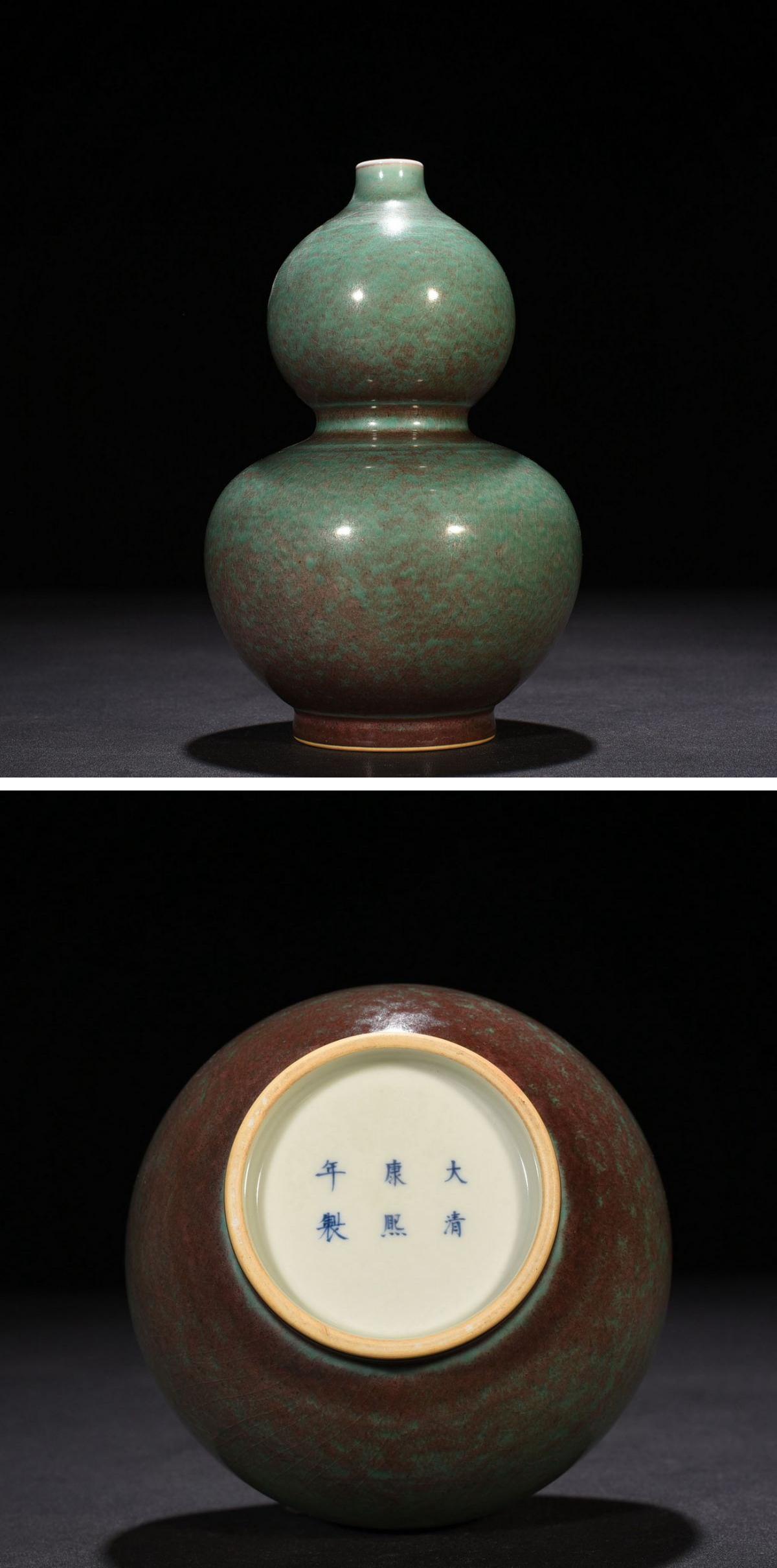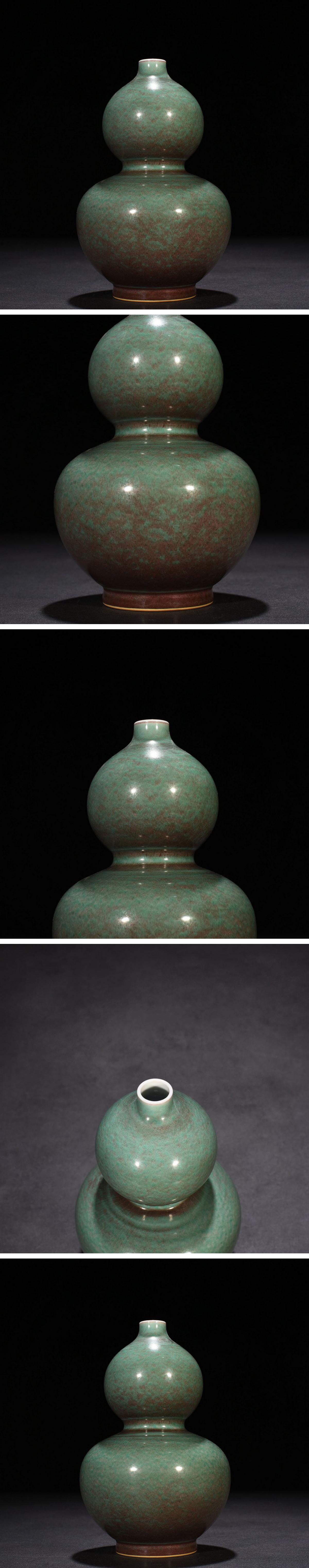 【雲錦】1円から 清時代 大清康煕年製 緑釉瓢箪瓶 花生 時代物保証 古美術 骨董品8L20-10TG3