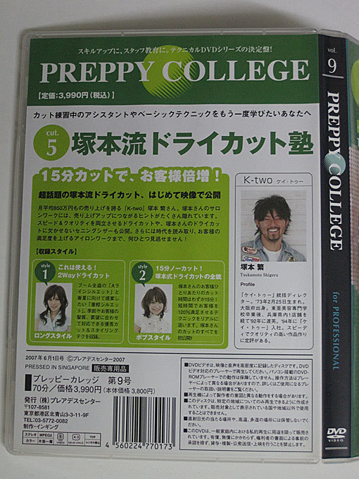 | 商品説明 | ご覧いただきありがとうございます。恐れ入りますが、終了後は落札者様よりお取引をご進行ください。 ・!での落札代金のお支払い方法は、 !かんたん決済のみになります。 ・評価不要の場合はお支払い前後までにお知らせください 【状態】中古DVD商品になります。画像のものがすべての出品内容になります。■ディスク・・・多少の薄スレございます。再生確認済。■ケース・・・多少のキズスレございます。■ジャケット・・・背とその周辺に少し色あせ見られます。白地部分、少々の薄汚れございます。■■以上、中古品ということをご理解のうえご入札ください。状態にこだわる方のご入札はご遠慮ください。 DVD「PREPPY COLLEGE Vol.9(cut.5)(中古) (商品より) カット練習中のアシスタントやベーシックテクニックをもう一度学びたいあなたへ 【塚本流ドライカット】 塚本繁 70分 定価 ¥3800+税 |