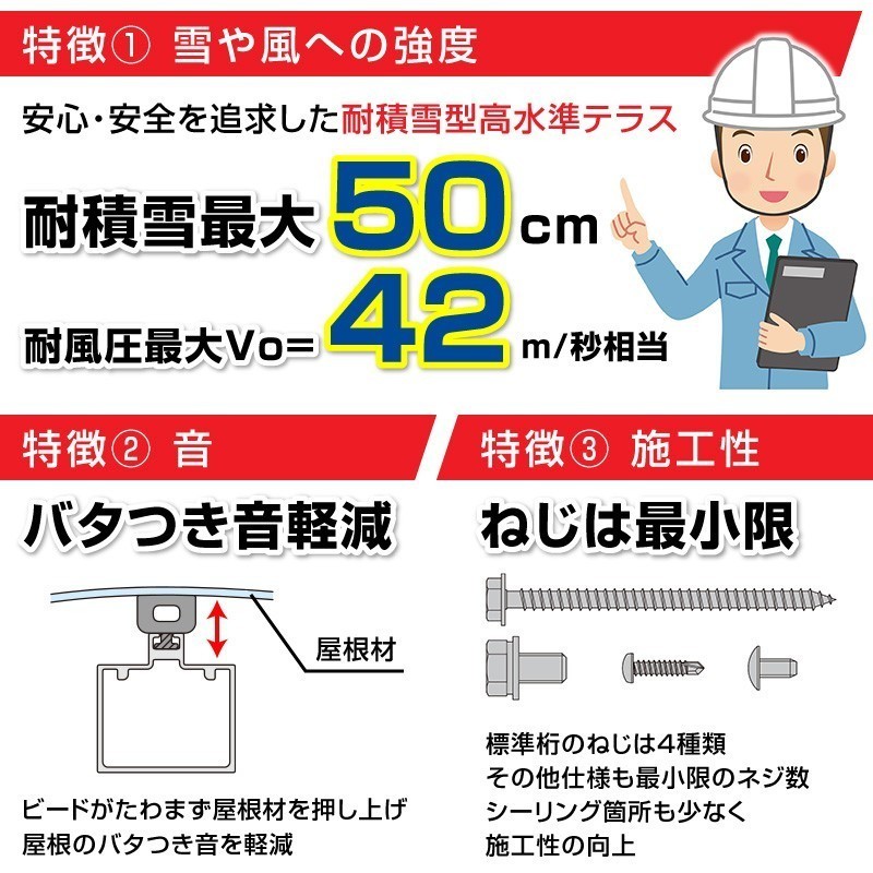| 商品詳細 | この度は数ある商品の中から当商品を閲覧頂きまして有難う御座います。 商品定価 177,870円 ⇒ 販売価格 71,060円(送料・税込み) ●2階バルコニーに取り付けることで、バルコニーの使い方に幅が広がります。 移動桁仕様なので、お住いのバルコニーに合わせて設置できます。 ●屋根材を安全に取付できる下止め施工を採用。 ●太く頑丈な柱と梁で強度抜群。積雪20センチまで対応可能。 ●耐風圧 風速42m/s相当まで対応。 ●中桟ビードをクッション性の高い形状に新設計。気になる屋根のバタつき音を軽減。 ●ねじ種類・シーリングを必要最小限にして施工の効率化を実現。 サイズ:間口1.5間2760mm(屋根外々) 出幅3尺870mm(壁面から柱芯まで) 高さ2300mm(バルコニー床面より桁下まで) タイプ:2階用 移動桁仕様(間口方向、出幅方向どちらにも柱を移動可能) 本体カラー:ライトステン・ライトブラウン・ライトブラック・ ライトホワイト(受注生産) ポリカ屋根:ブルースモーク・ブラウンスモーク・クリアマット2 ●テラス本体の組立説明書はこちらからご覧頂けます。 お好みの本体カラー、屋根材をお選び頂けます。 オーダーフォームのご要望欄にてご希望の本体カラー、屋根材をご連絡下さい。 オプションも安価の金額で、熱線遮断ポリカーボネート板、 竿掛け、前面パネル、側面パネルもご提供可能です。お気軽にお問い合わせ下さい。 ■オプション品をご希望の方は落札前にご希望のオプションをお選び頂いてから金額を お問い合わせください。ご納得して頂いた上、落札後にオーダーフォームで ご希望のオプションをご連絡ください。折り返しで合計の金額をご案内させて頂きます。 ■オプション「前面パネル」の組立説明書はこちらからご覧頂けます。 ■オプション「前面パネル隙間隠し」の組立説明書はこちらからご覧頂けます。 ■オプション「側面パネル」の組立説明書はこちらからご覧頂けます。 ■オプション「側面パネル隙間隠し」の組立説明書はこちらからご覧頂けます。 ■オプション「吊下げ式固定物干し」の組立説明書はこちらからご覧頂けます。 ■オプション「吊下げ式固定物干し(ワイド)」の組立説明書はこちらからご覧頂けます。 ■オプション「折畳み物干し」の組立説明書はこちらからご覧頂けます。 ■オプション「屋根妻パネル」の組立説明書はこちらからご覧頂けます。 ■オプション「屋根ふき材補強部品」の組立説明書はこちらからご覧頂けます。 |