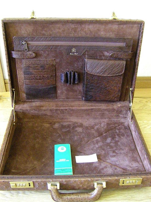 | オーストリッチ製 トランクLEONEマーク付 22-07-11-008 ◆商品説明◆ サイズタテ32cm ヨコ41.5cm 厚さ9.5cm 備考 中は全体ビロード張り 一部角スレあるも状態は良いと思われます ※時代なりの経年劣化はあります。 詳細につきましては画像を添付ありますので、見にくいとは思いますがご確認ください。 |