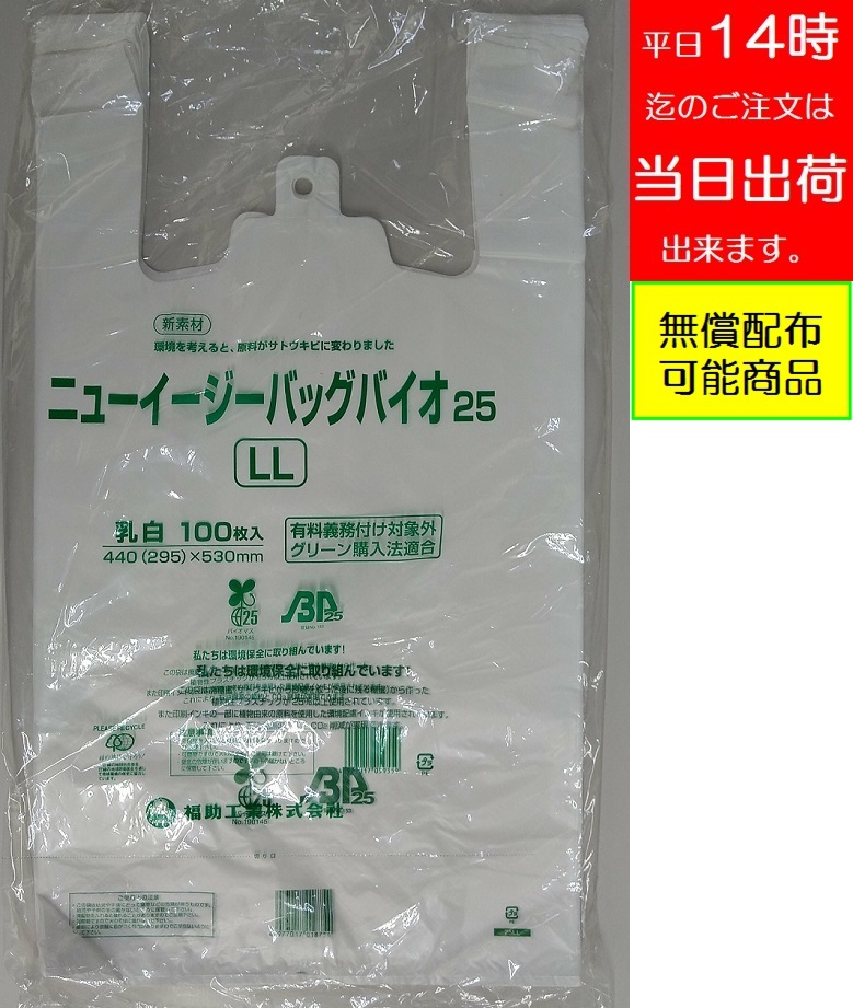 バイオマスプラスチックを25%以上配合しているため、有料義務付け対象外のレジ袋です。