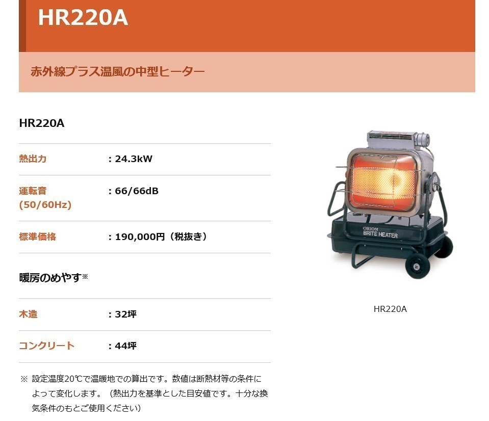 オリオン ジェットヒーター HR220A1 60hz 業務用 赤外線暖房機 おすすめ 卒業記念