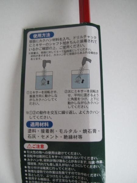 | 【商品説明】 新潟精機 電気ドリル用 パワーミキサー M-80新品になります。 塗料や液体等のカクハンにお使いください。 適用材料 セメント、モルタル、接着剤、塗料、焼石膏、石炭、絶縁材等 ブレード径φ80 全長400㎜ 六角軸対辺8.0㎜ (10㎜以上のドリルチャックをご使用ください。) 最適カクハン量 約8.0Kg 最大カクハン量 約10.0Kg 適正回転速度 約200~700min 写真にあるものがすべてです。 本品は新品、未使用品ですが箱等に多少の汚れ細かな傷等がある場合がございますご了承ください。 完璧な商品を求める神経質な方はご入札なされないようお願いいたします。 ノークレーム、ノーリターン、ノーキャンセルでお願いいたします。 上記の記載をご理解の上ご購入のご検討をお願い致します。 【お支払方法】 ゆうちょ銀行、 ジャパンネット銀行 楽天銀行 【発送について】 沖縄・離島は別途送料がかかりますので、お問い合わせください。 注意事項 当店での出品中の商品は店頭と他サイトとの同時販売の為在庫切れなどの場合もございます、在庫切れの場合納期がかかります入札前に必ずご質問ください。 送料と振込手数料はお客様ご負担になります入金の確認後発送とさせていただきます。送料料金に関しましては梱包手数料梱包費が含まれております。 商品説明にもございますよう、多少の汚れ等ございます。完璧な商品を求める方は、入札をお控ください。 お客様都合による返品・交換は一切受け付けておりませんので、必ず詳しい程度をご確認の上ご入札下さい。気になることがございましたらご遠慮なく質問して下さい。 撮影時の状況及びお客様のPC環境等の諸事情により実際の色目と違って見える場合がございますのでご理解のうえご入札お願い致します。 在庫切れ等の場合出来る限り早急発送を心掛けておりますが、出荷まで数日かかる場合がありますので、お急ぎのお客様は在庫等お問合せ下さい 配送に補償がついておりません補償発送をご希望の方は申し出ください。ノークレーム、ノーリターンノーキャンセルでお願い致します。 土、日曜日、祝祭日、はネット業務はお休みのため、商品の発送及びご連絡等、質問への解答 が休日あけに遅なる場合がございますがご了承ください。 管理番号新潟精機 電気ドリル用 パワーミキサー M-80 |