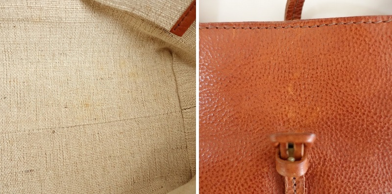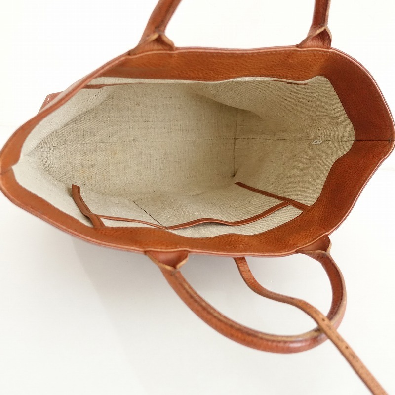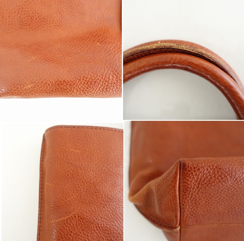 | ユーズドで持ち手に小キズ、表面所々に擦れやキズ、内底にシミが見受けられます。レザー製品ですので、使用頻度に関わらず付いたキズ等があるかと思われます。ご理解いただける方のご購入をお待ちしております。 |