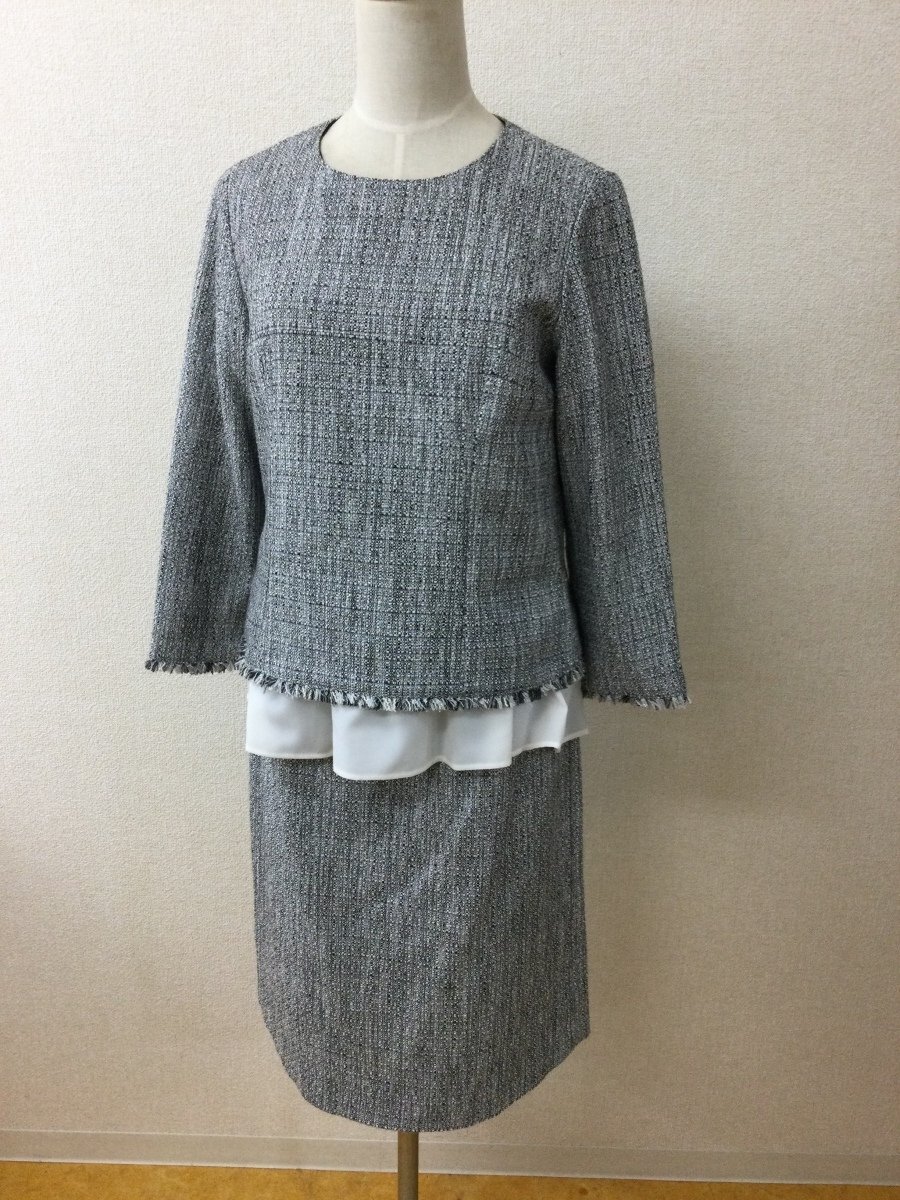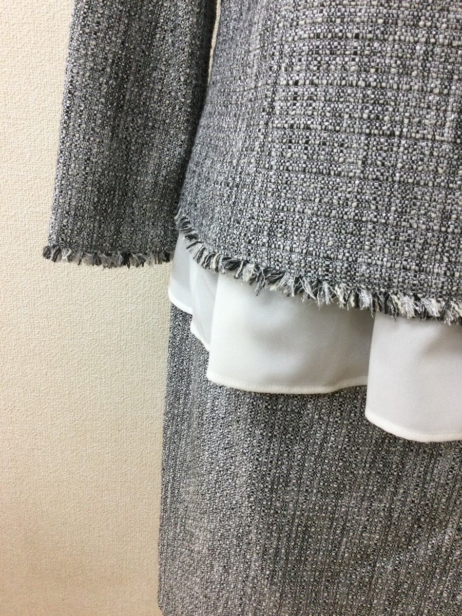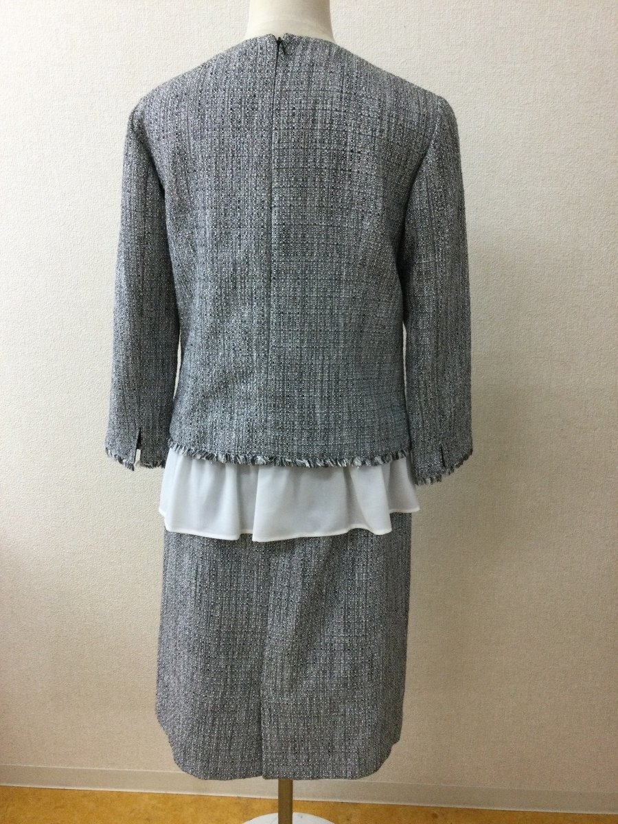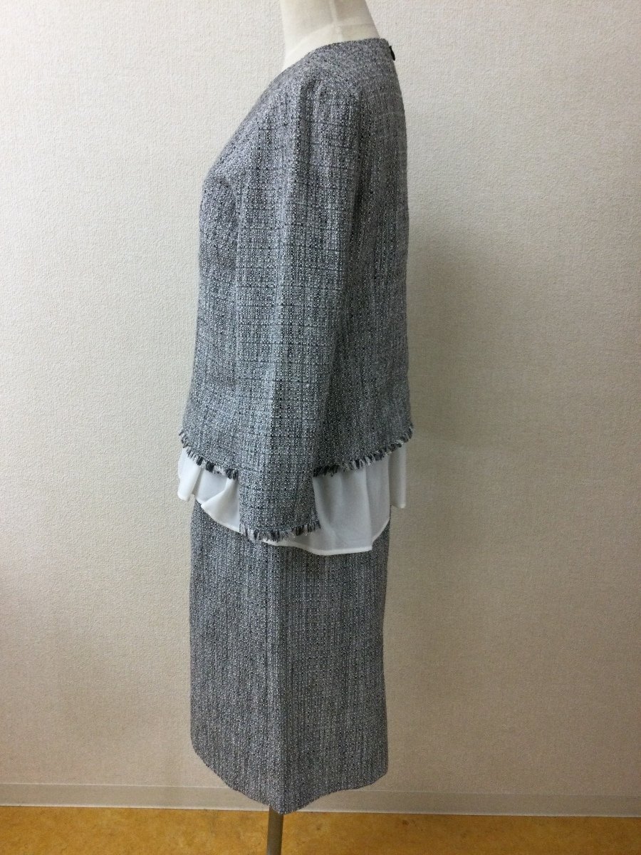 | 管理番号:10^135645 Style Note 白黒ツイード×シルバーラメ セットアップ 白インナー付き 表示サイズ:11R 実寸(参考)