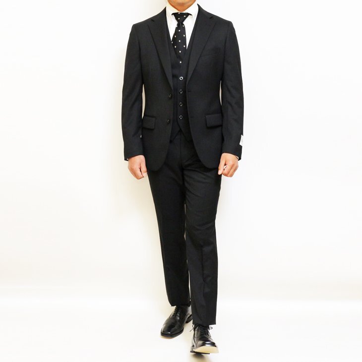 | デザイン | 2つボタン・センターベント・4つボタンベスト・ノータックローライズパンツ | |||||||||||