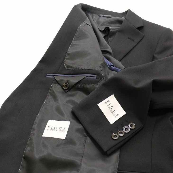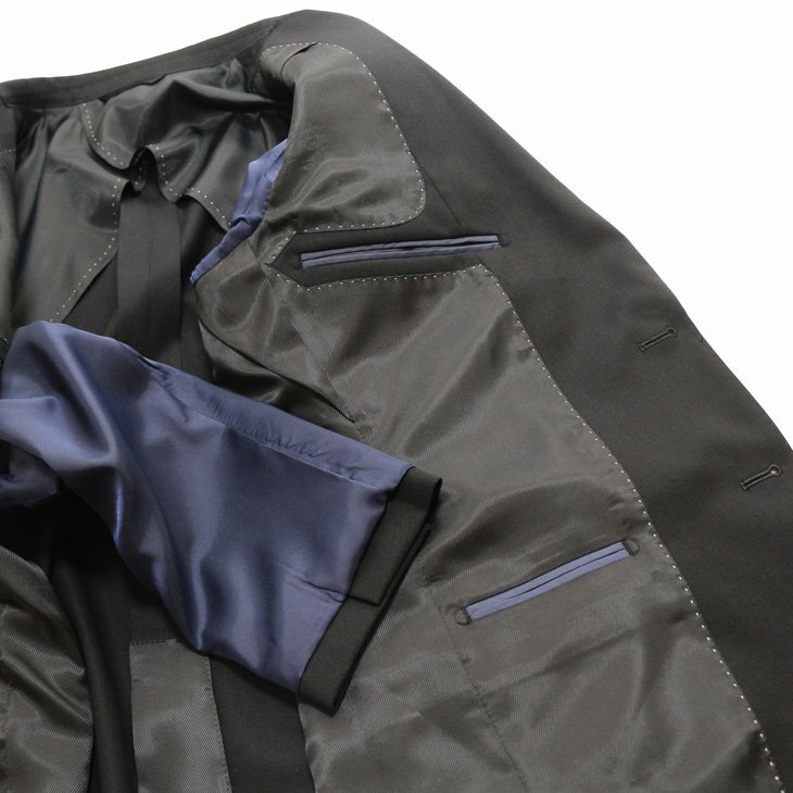 ラペルAMFステッチ(無し)背抜き仕立て・薄肩パット入り・袖口4つボタン 袖口裏額縁仕上・ピンポンステッチ・ボタンX止め・汗止め・チョーシック 生産国:中国製*仕上げプレスは、国内で施しております。 |