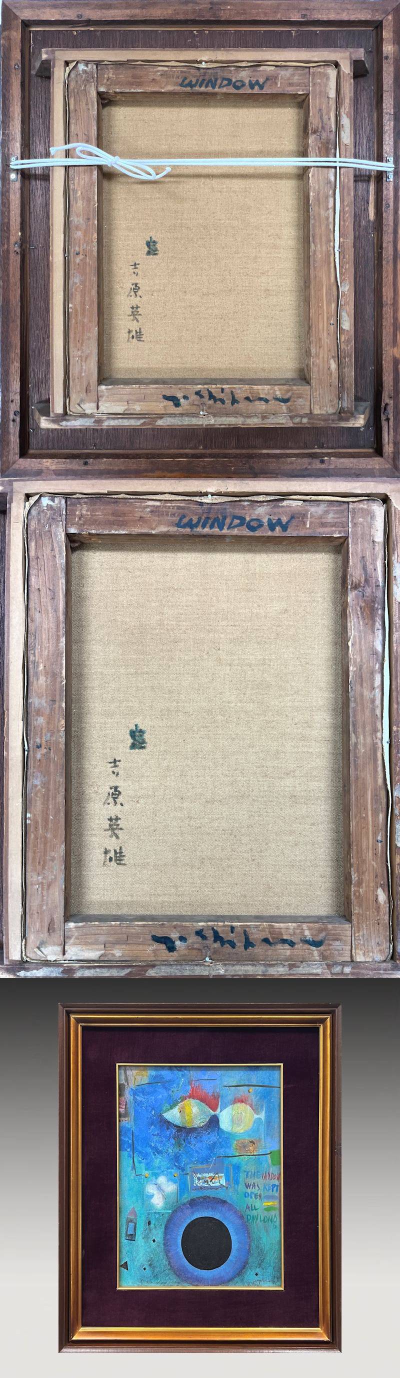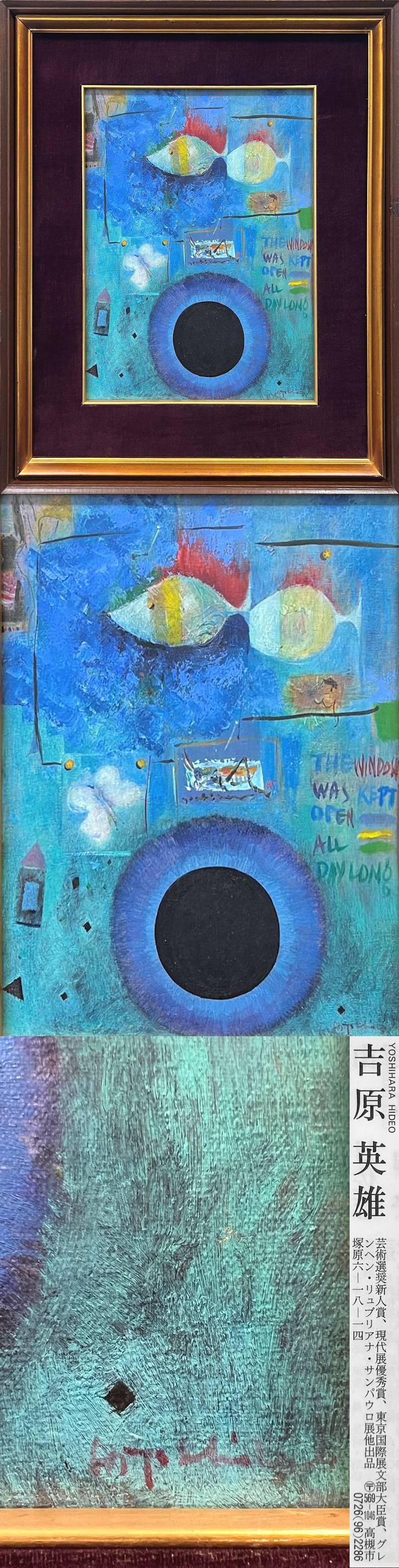 1931(昭和6)年1月3日、広島県因島市に生まれる。 17歳のときから近所の画家のもとに出入りし、クレパス画や水彩画、専門書に触れるうち美術の世界に引き込まれ、とりわけパスキンの水彩に惹かれるようになる。 浪速大学(現、大阪府立大学)合格後間もなく喀血し入院、病状が快方に向かうと、二科会会員の彫刻家上田暁に弟子入りし、上田も講師を務める大阪市立美術研究所に通うようになる。 52年からは、同じく講師であった遠縁の吉原治良のアトリエに通い、本格的に絵を描き始める。芸大・美大への進学志望から転向して、 公募展を目指した吉原の初出品は54年の第2回ゲンビ展であった。 ゲンビの中心的存在でもあった吉原治良主導の具体美術協会結成に関わるが55年に脱退、瑛九を代表とするデモクラート美術家協会に移る。 「イワンの馬鹿」や「断章」、「都会の重心」「空の標識」といったシュルレアリスティックな油彩画を出品する一方、泉茂の影響でリトグラフを始める。 57年、第1回東京国際版画ビエンナーレにリトグラフ「ひまわり」を出品し池田満寿夫とともに入選、泉茂も招待作家として参加したが、これを機にデモクラートは解散する。 国際展に入選すること自体が珍しかった当時にあって、58年には第1回グレンヘン国際色彩版画トリエンナーレに「潜水」が入選。 この頃から抽象への移行が現れ始め、その決定的作品となる「黒い流れ」は、機械的に描かれた短い線による表現で、続けて複数の円形を並置する構図や版画の紙を破る技法等を試した後、 同一画面上で二つの相似した形を並べる方法を取り始める。65年からリトグラフと銅版の併用を始め、鳥の嘴と女性の肉体、原色のストライプを組み合わせた作品を多数制作した後、 68年の第6回東京国際版画ビエンナーレに招待出品し同手法による「シーソーI」で文部大臣賞を受賞。 米モード誌の写真から引用したスカートの女性モチーフを反復させた構図と鮮やかなブルーが印象的な本作品は、吉原の代表作であると同時に、日本におけるポップアートの記念碑的作品ともいえる。 70年、第20回芸術選奨文部大臣新人賞受賞。その後リトグラフのみによる「ミラー・オブ・ザ・ミラー」シリーズ、70年代後半には銅版による「剥奪されたもの」シリーズ等を展開。 78年に京都市立芸術大学教授に就任、若手を育てる一方で、自身は「ガラステーブル」「二つの地平」などのシリーズを手がける。 以降晩年にかけて展開された「モノクロームの人々」「樹の聲・人の聲」「二つの地平―残像」などのシリーズではモノクロームの作品が主となる。 1994(平成6)年紫綬褒章受章、翌年京都市文化功労者の顕彰を受ける。96年京都市立芸術大学名誉教授に就任。2002年勲三等瑞宝章を受勲。03年大阪市文化功労者の顕彰を受ける。 01年町田市立国際版画美術館にて「吉原英雄の世界―色彩の誘惑・形のエロス―」が、05年ふくやま美術館において「吉原英雄:ポップなアート」展が開催された。 2007(平成19)没。享年76歳。 |