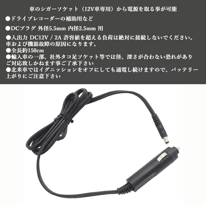 車のシガーソケット(12V車専用)から電源を取る事が可能