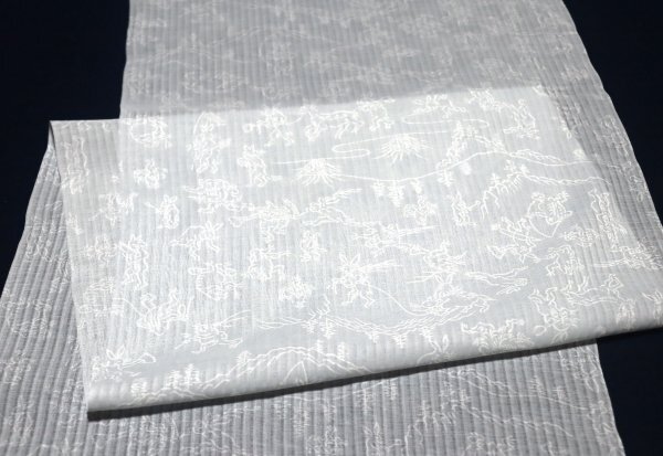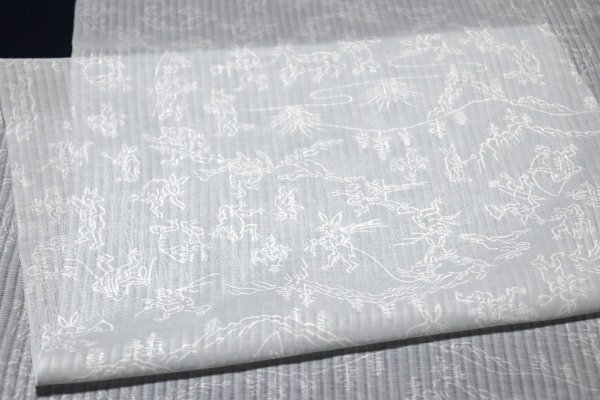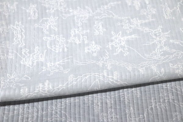 | 【京わぎれ】東レ 爽竹 縦絽 夏物長襦袢 はぎれ 鳥獣戯画文様 薄グレー地×白抜き線柄 うそつき袖・替え袖用 2.2m ① | ||||