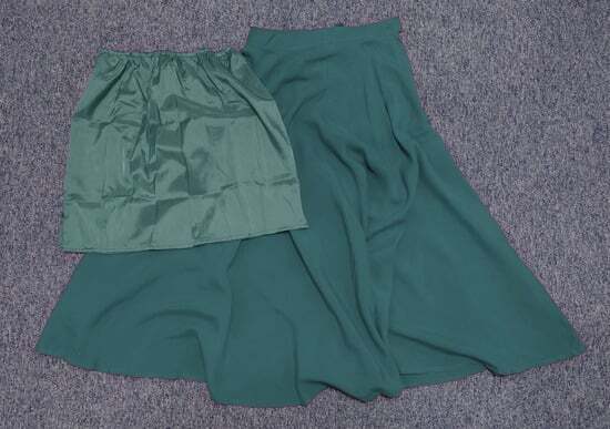 ■【新品・未使用】夏は涼しいシルク100% レディース ロングスカート Sサイズ W62cm ダークグリーン ペチコート付■ブランド:jasmi SILK ジャスミ シルク